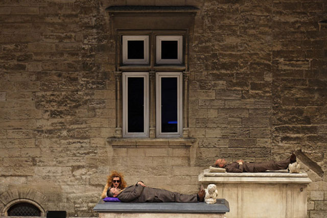 Built in the 14th century as a symbol of religious and political power, the Popes palace, its architecture and its History will be the starting point for Papperlapapp, Christoph Marthaler's new musical and theatrical piece. It will also be the setting for the tragic fate of Richard II who, at the end of this same 14th century, surrendered to his human fragility when confronted to the demands of exercising power. This Shakespeare tragedy was the first ever presented at the Festival d'Avignon in 1947; this year it will be given in a new translation, starring Denis Podalydès in the title role. Olivier Cadiot's novel, A Nest What For, which will be adapted for the stage, also questions the figure of the king, experiencing this time a very contemporary exile.