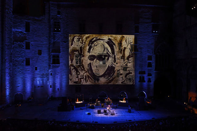 Music will be present throughout the Festival, notably with concerts by Pascal Dusapin and Rodolphe Burger, who will moreover orchestrate a large-scale ball for the 14th of July by the Pont d'Avignon. Contemporary literature will also be heard on many stages as well as in a series of readings.