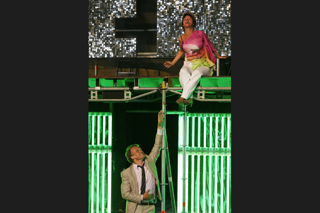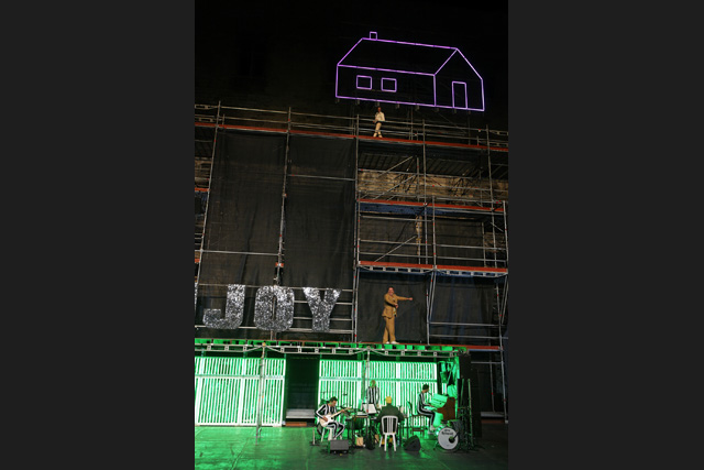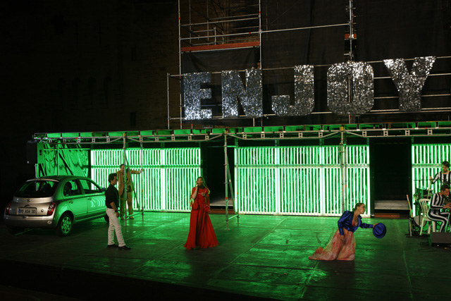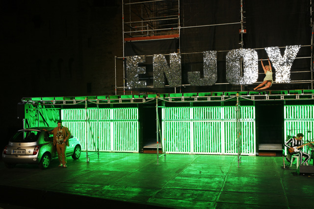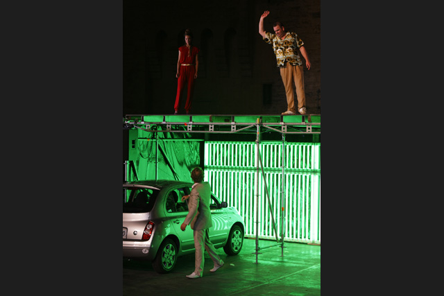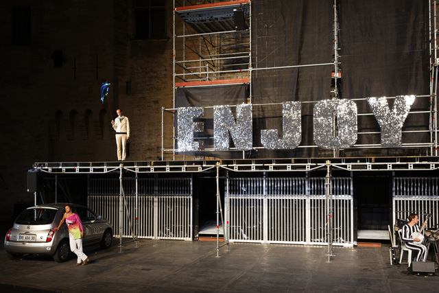 Casimir goes with Caroline to the great beer fest in Munich. However, he does not enjoy the fair: he has just lost his job as a chauffeur and is afraid that his fiancée, if she finds out about it, will leave him for a better match. But Caroline is not worried about it and believes that their love is stronger than money, she really does... And so begins Kasimir and Karoline, one of Ödön von Horváth's masterpieces, performed in French by the NTGent troupe. The atmosphere is uproarious, heads turn like the carrousels, conventions are shaken up, reality drifts away in the vapours of alcohol. But social hierarchies and the reign of money cannot be denied very long and will be imposed in the end, to put everything back “in order”. Because if the festival is a farcical and joyous celebration of the people's equality, pride and identity, it is also that, alienating, commercial and pitiless, of the general marketing of the world. Johan Simons and Paul Koek know how to party and their “musical theatre” shows it in the most brilliant way. The Cour d'honneur will welcome songs, laughter, dances, quarrels and anger, as well as a music that is genuinely present, composed of a dozen suites, punctuated with wild or melancholic tempos with rock'n roll as well as contemporary accents. It is in this setting that the pair will develop their theatre of intervention, history and politics, in which the social pamphlet coincides with the cruellest observation: where the economic structure is the most oppressive, class struggles lay hold even of love, and the law of the strongest always ends up governing human relations. Imagined by Bert Neumann, the impressive sets, built with tubular structures rising high along the walls of the Popes' Palace, will be like the fairground monster who devours men's dreams while welcoming their dances and games. It will be a setting for love, joy, sensuality and, at the same time, the factory where they are made on the assembly line, the garage where they end up locked in. Because through their vision of Kasimir and Karoline, it is the implacable topicality of a social-amorous drama on a backdrop of an economic crisis that Johan Simons and Paul Koek restore. ADB