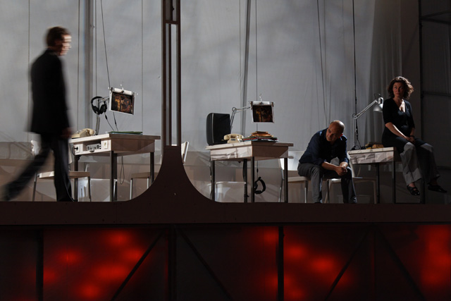 Talking about the world, unwinding it, unfolding it still and always, like a fresco. Anchoring yourself once again in history and in stories, in the collective and the personal, to create a theatre of here and now. If the final movement of Wajdi Mouawad's Avignon quartet is part of this continuity, it rings nonetheless like a counterpoint to the three preceding works, to really make people hear that the world can also get lost in looking for too much meaning, in wanting at any cost to recover memory, in constantly running after the infinite. Whether it concerns content or form, it is a new search that the author and director begins, shutting up his characters in a unique, closed, stifling setting where the world's noises only enter through an ultra-sophisticated wiretapping system that a major power has made available to them to attempt to prevent a gigantic terrorist attack. A genuine Tower of Babel where all languages mix, this high-security place becomes the prison of these “listeners” who can only communicate with their families through a video-conference system. In a new scenography that will involve the audience, it is an equally new writing that Wajdi Mouawad will propose. A polyphonic writing that will be as much heard as seen since the texts, images and sounds blend into each other to create a poetry of daily life, unlike Littoral, Scorched and Forests, which made the relationship between the writing and the actor the essential foundation of the performance. We are therefore invited to undergo a theatrical experience at the very heart of a terrifying enigma, at the very heart of this ultra-contemporary world that can cause us distress and that the bracing theatre of Wajdi Mouawad, located as close as possible to reality and as far as possible from realism, makes fascinating. JFP