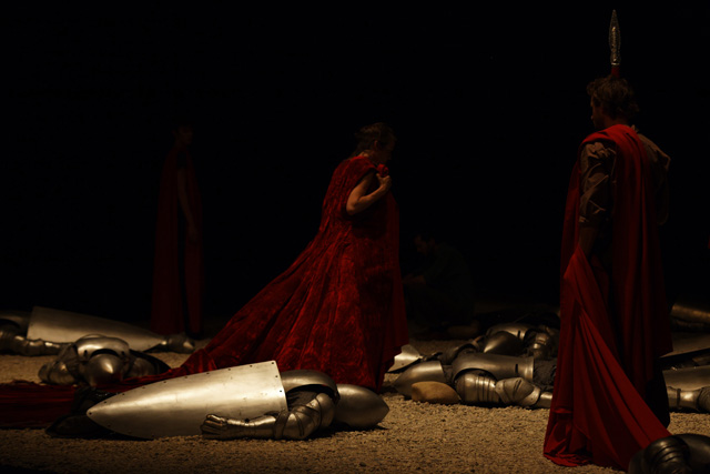 It is difficult to describe a show that still does not have, in this month of April, at the moment the Festival programme is being written, a name or a definitive intention. This “2009 premiere” takes this risk: it is about a month and a half before the first performance that “it starts to appear”, asserts Maguy Marin, who likes and looks for that fever when “everything ignites very quickly in the final weeks”. It is undoubtedly this energy, that of the last moment, that drives her, an ardour that she then attempts to share with her company, then with the spectators. Before, the choreographer “refuses to name things” and it seems fitting here to respect what is for her a creative process, a dance manufactured through gradual infusion then rapid combustion. All that we know is that there will be nine artists on stage, old-timers from the Centre chorégraphique national of Rillieux-la-Pape or more recent arrivals who have come from dance, the circus arts or have simply taught themselves about bodies in movement. They have already read all the texts on the performance, they have worked on them at the table. They have also watched burlesque films and have questioned themselves on the mechanical play of bodies that, sometimes, elude the human, on laughter as an uncontrolled expression of the shadowy depth that slumbers in us. There is also, at the heart of this constantly evolving work, a lyrical ambition, the will to create a narrative, a desire for an epic. This construction through strata, through layers gradually deposited, will give birth to a show, when everything will accelerate, shortly. Then, there will be a title and this show will become ours. ADB