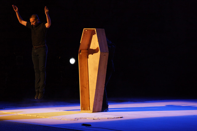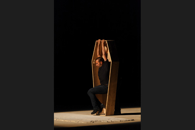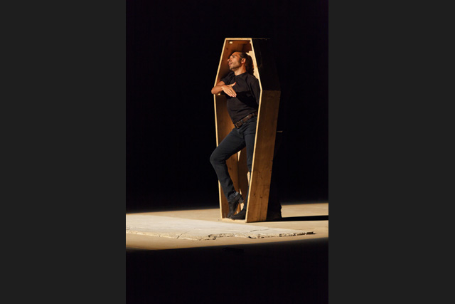 Galván goes up on a simple platform of black wood. At one end it opens in half under his weight. He dances and his steps set off a genuine earthquake, with incredibly powerful bursts. In just a few movements, seemingly the simplest, he transports and dumbfounds us at the same time. Knight of the Apocalypse, perched on a raft with a screaming maw, he immediately imposes his dark, extreme, terrible presence. In The End of this State of Things, Redux, surrounded by a dozen musicians and dancers going from the purest flamenco to the most feverish rock'n roll, he interprets the inverted mass of the Apocalypse, a black mass with its liturgy shaped by the world's violence. His body reads John's text, each step of his liberated flamenco corresponding to an interpretation of a verse, a phrase, of this great text ill from the destruction to come. “Babylon the great is fallen, it has become the place of devils, the hold of every foul spirit and a cage for every unclean and hateful bird.” On the borders of tradition and innovation, both carried and held up by the music and the songs, Israel Galván takes up the fight, gradually exhausts himself in this ritual of death, to be better reborn, pushed by the energy of the last breath, going as far as, in the end, dancing on and inside coffins in a stupendous finale. The other intuition and grandeur of this show consists, for this Seville native, in having constantly crossed the incarnated reading of this ancient text with his own life, in having plunged into today's world, where John's narrative resonates with a strange topicality. In Beirut, under the bombs of the war in 2006, the starting point for this choreographed vision; at the junction of his meetings with his family, friends and students; following the various inspirations of a man curious about everything, from the tarentella to the butoh. To a final nod in the direction of Coppola's cinema, apocalyptic as well. ADB