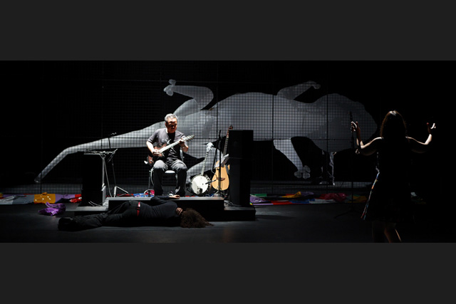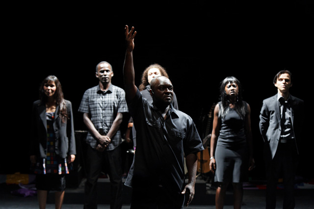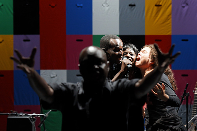 How do you see the world when you live in a poor, very poor country like Madagascar and when you look, from there, at the West, which remains wealthy despite the crisis? Thierry Bedard asked Raharimanana to answer this question. The Madagascan author did so by bringing together a gallery of “figures” that recount, by fragments, what remains of the domain of the unnameable, what had been so deeply buried that an entire continent today is still “ill from its memory”. The West, often moulded from common places, remarkably sure of its fundamentals, is questioned when the world's disorder appears, the disorder of dominant thinking, the disorder of destitution which are at the heart of Raharimanana's writing. A writing that handles irony like a saving weapon, that likes strong images and scathing sentences. It is impossible to escape those voices that, against the protective immobility of the privileged and the powerful, disturb destructive and ineffectual conformity. The revolt of the active word is set against chaos, all those “people of little” who inhabit immense territories, more or less exploited, more or less ridiculed, more or less despised, against the figures of power. Figures of reality or fiction, humans or animals, heroes of novels or innocent victims, they all have their place to recount the state of the world. The gods, the dictators, the corrupters, the outcast, the abandoned and even the little Madagascar gecko, a supple and clever reptile, which goes everywhere and never closes its eyes. All of them take part in this “desperate but not despairing” nightmare, jointly orchestrated by an engaged director and author, served by a group of atypical interpreters who come from the theatre, stand-up comedy or music, from France and of course from Africa. JFP