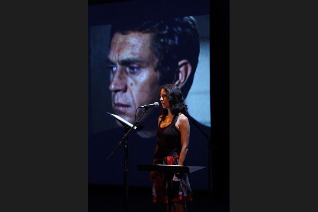 McQueen, as in Steve, the American actor who was Renée Gagnon's inspiration for a text that deals with the passion a woman can have for a screen icon, as the possible intrusion of fiction into the reality of a life. A woman's poem, a poem made up of men, that reinvents McQueen in an existence accelerated by words, in which a single love creates a thousand images and as many adventures. Very interested in stage extensions of the poetic word, the young author from Quebec imagined McQueen Project: a multimedia venture between a Western and a film noir, that brings the book that she published in 2007, Steve McQueen (My Sweetheart), to life. A project that relies on the use of other texts, video (notably the extracts from McQueen's films) and sound, to create a dialogue with the text and make it come alive in a different way. To bring out other meanings, underline certain passages, have the humour spring out and feel the presence of the lover as much as that of Renée Gagnon who, as a possessed reader, brings her text on stage with great skill.