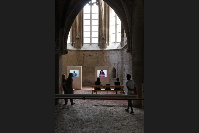 It is in the Église des Célestins, a primal space in which the sacred is made up of bareness and simplicity, that Joana Hadjithomas and Khalil Joreige install their images and sounds in the form of projections, light boxes and suspended photos, between obsessive presence, mute absence and the bursting of lost bullets. Images that are part of Lebanon's life. In them, we read the problematic memory of this country and the complexity of its identity. To only mention a few of the works that will compose this exhibition: the double film Khiam 2000-2007, the name of a detention camp in Southern Lebanon, which was occupied at the time by Israel. In 1999, when there was no image of this prison, six former inmates who had just been freed testified facing the camera about their detention conditions, their way of surviving through tiny artistic projects carried out quite clandestinely. Liberated in 2000, transformed into a museum, the Khiam camp was completely destroyed by the war in July 2006: today, the question has been raised of rebuilding it true to the original. Eight years after their release, the same six former prisoners evoke the liberation, then the destruction of the camp, memory, reconstitution and the power of the image. The Église des Célestins thus seems to fully resonate with what has driven Joana Hadjithomas and Khalil Joreige for years: retaining the traces, questioning what is seen, what is not seen, making the invisible speak, rendering it faithfully, but also calling up the ghosts to question Lebanon's present. The work they carry out there, based on their heavily laden past, their current latencies, their present, their little stories kept secret, their “heroes”, is made up of sensations that challenge the spectator's acquired knowledge, shift and displace his viewpoint. In the extraordinary atmosphere of this Avignon church, they will compare their work in quest of history to a memory-laden site, their reflection on ruins and traces to an edifice itself in ruins that has the authority of vestiges. An exhibition like a dialogue, a correspondence, a meeting between this place and certain works that have already been produced, or will be on this occasion, to see what this engenders, in the hope of giving birth to what Hannah Arendt calls “instants of truths (...) like oases in the desert”.