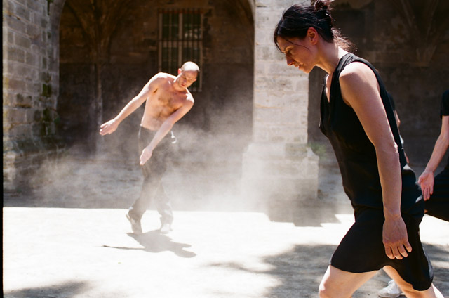 Looking at a body dance on Anne Teresa De Keersmaeker's stage is necessarily seeing music being incarnated since, like a virtuoso instrument, the dancer is the best possible interpreter of a score in which the notes are steps and the tempo a movement. In her constant search for the alliance between dance and music, the choreographer explores a new world. After Bach and Webern in Zeitung, the Beatles and their White Album in The Song, she has chosen ars subtilior as the inspiration and starting point of her new piece. A polyphonic, sophisticated musical form dating from the late 14th century, which was notably invented at the popes' courtyard in Avignon at the period of the Western Schism, that is, when other popes sat at the same time in Rome. This music, with all its contrasts, ruptures, superimpositions, intersections and sometimes dissonances, is a constant source of surprise. In this sense, it rather accurately bears witness to a period of crises during which the pillars of society, whether political or religious, were strongly shaken. Based on what could seem a score of disarray, played directly on stage, Anne Teresa De Keersmaeker composes movements as if a breath had seized her dance. Then every freezes, for a time, and only the vibration of a voice, the timid resonance of a light flute, succeed in reanimating bodies that might have been said to be won by death, omnipresent in the minds of this period. The incarnation here takes place through an interiorization of the music, which transforms the movements and gestures into pure act, as though the dance became a heartbeat, the passage of the wind on the bare stage, the language of a sovereign incorporation. But the fragile balance can be broken and the harmony implode into chaos when the storm returns from the past and history imposes its macabre cortege on men, like a pastoral of fear. At a distance of more than 600 years, in a Celestine cloister dating from the same period without any pretensions or artifices, Anne Teresa De Keersmaeker confronts us in this way with ourselves, through the sole power of the dancing bodies and the music interpreted on stage. ADB