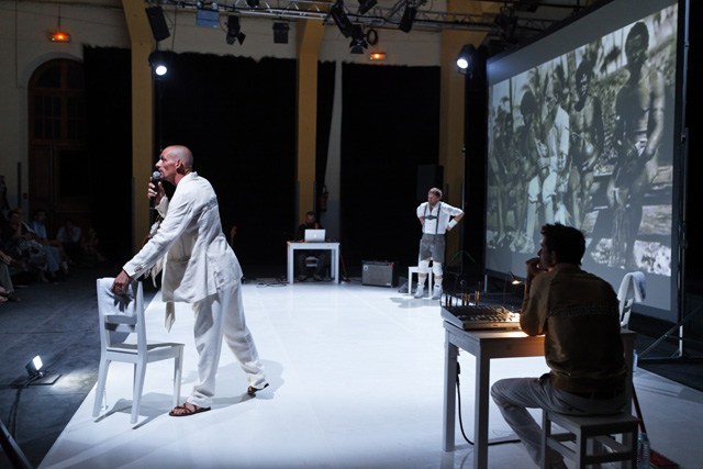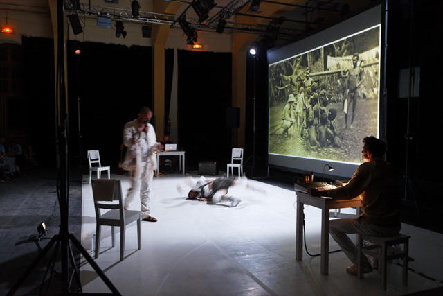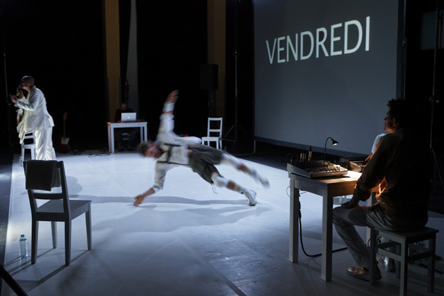 How can the encounter with the other be told? In 2008, six authors received a commission to immerse themselves in the Usine, a street arts creation workshop near Toulouse. From their dive into the universe of the urban show, their contacts with the venue's artists, technicians, users and public, six texts, six curious, amused, sometimes cynical, often dumbfounded viewpoints emerged. Six experiences that the members of the GdRA grasped, mixing them with the texts of the ethnographer Bronislaw Malinowski, who left Europe to observe the Trobiand Islanders of New Guinea in 1911. The result is a lecture-show led by an actor-storyteller and a dancer-acrobat. Imagining new Fridays and new Robinsons, they ask the question of how those that we come across are viewed, a view that changes depending on where the encounter takes place and the inner state of the protagonists. What body posture do we have? What feelings are awakened in us? Are we ready to share? What desire for knowledge and discovery do we really show? With images, projected words, danced acrobatics and moments of the story, the members of the GdRA cast their artists' viewpoint on our difficult but always possible encounters. JFP