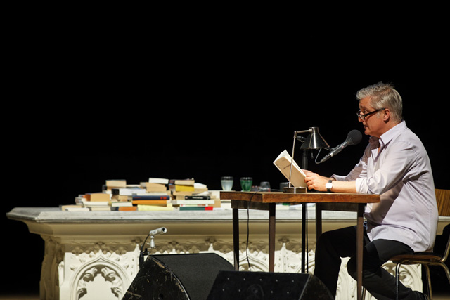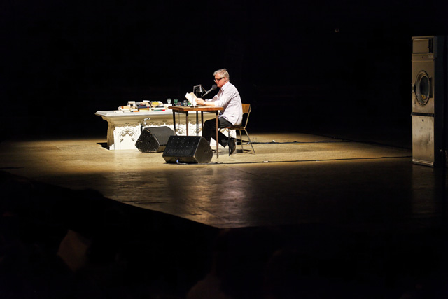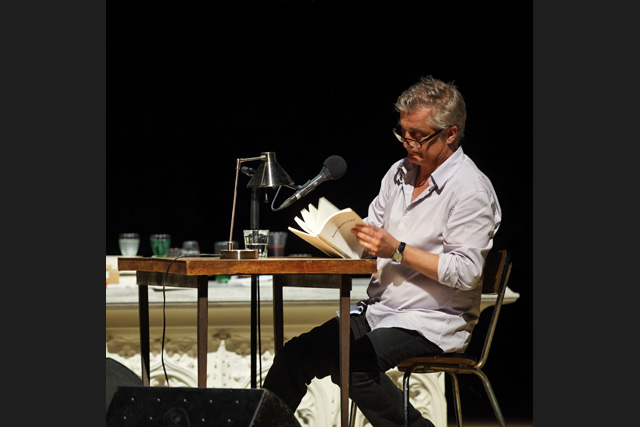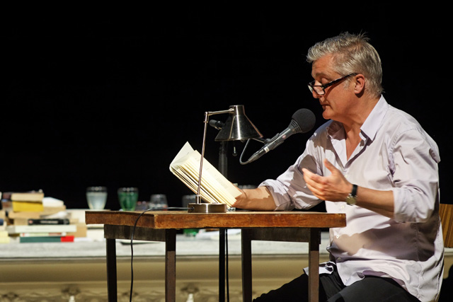 "It is perhaps only at the Festival that I'll be able to deploy my work in all its facets, beginning with a reading that will allow my texts to be heard in complete complicity", Olivier Cadiot said in a perfectly natural way, reflecting on his new role as associate artist (of words) at the Festival d'Avignon. "And why not imagine it in the Cour d'honneur of the Palais des papes?" Olivier Cadiot already had to measure up to this legendary venue in 2004, during a performance preceding the concert by Rodolphe Burger. This time, he will work alone, at the table, for an hour, reading in the set of Christoph Marthaler's show, a book made of all his books. An accelerated crossing of his body of work, this Robinson Affair follows the alter ego character that he invented over nearly 15 years and five novels, The Colonel of the Zouaves, Definitive and Durable Return of the Loved One, Fairy Queen, A Nest What For and A Magus in Summer. A literary myth, Robinson has become the reflection of daily life in our time, which he reinterprets by blending memories, feelings and hallucinations of the mind in it. Words that come to his imagination attempt to channel his sensations and impressions. Olivier Cadiot loves this Robinson character who grows old with him, who opens a common track in his various texts. A paper being who is neither a master nor a manifesto, but a proposal. A proposal that would create a big brother who was not at all well intentioned. In short, a condensation of Olivier Cadiot. ADB