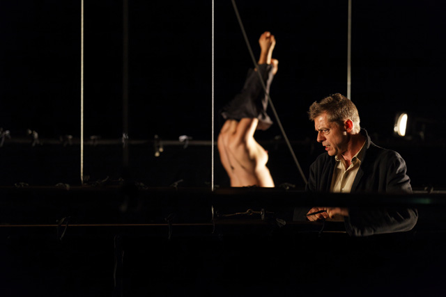 The orchestra is the ideal place in which the breath of the group and individual talent blend so that, beyond the score of each instrumentalist, the collective work can be heard. In The Lost Orchestra, Christophe Huysman's idea is to bring together interpreters who, using the most diverse forms imaginable, crossing decomposed and recomposed universes, recount the difficulty of living in a world "where everyone has a hard time getting together", as he says. From tragedy to vaudeville, from musical melodrama to burlesque, everything is grist for the mill to multiply the accesses to a show universe, which recalls how urgent it is to talk about humanity in a society in which it has increasingly less of a legitimate place. A theatre of excess, a theatre of freedom but also a theatre of reflection, Christophe Huysman's work orders disorder, separates speech and the body, looks for all the possible ways to name and to express. It is this searching theatre that the author-director proposes to us, to go beyond the trompe-l'œil and assert the original paradox of the theatre, which must lie to reach the greatest truth. Present on the stage, he imagines, with the other interpreters, the how-to-do and the how-to-say, encourages them to take risks, to go beyond themselves, to accept imbalance, following the example of his texts made up of fragments, alternating dialogues and monologues. He is a poet who speaks about the world, who attempts to describe the indescribable without wanting to simplify it or make it acceptable, who invites us on a journey with, for guides, the characters of this "lost orchestra" with its many bodies and interchangeable roles. Mother, daughter, friend, banker, politician, solider, survivor, assassin and victims: they are all brought together to be the thousand faces of "unlikely" humanity in which "the hope of the collective nevertheless subsists". JFP