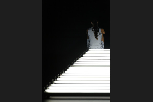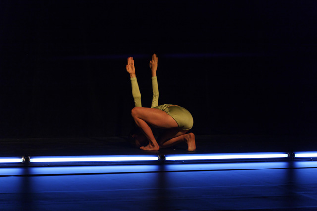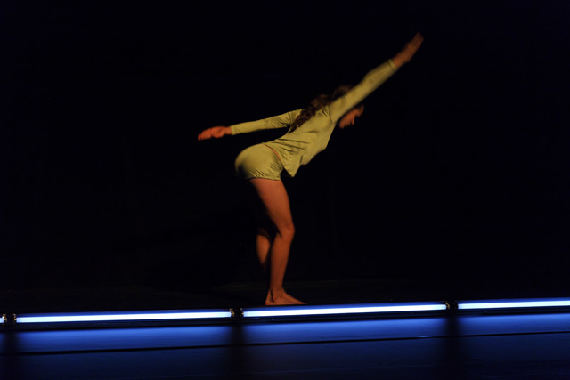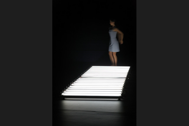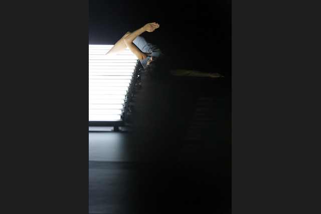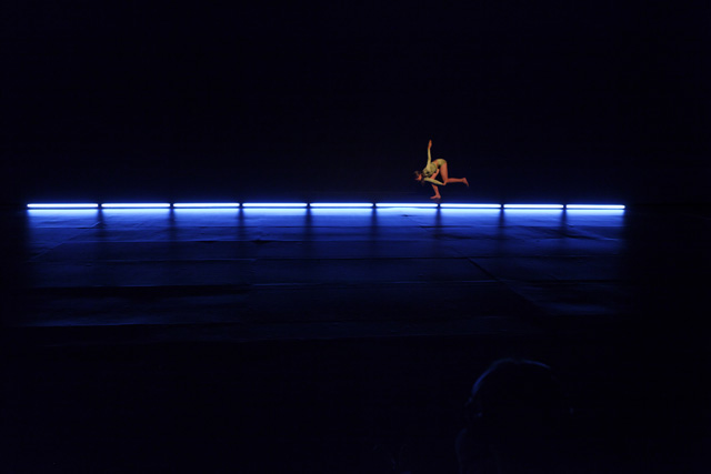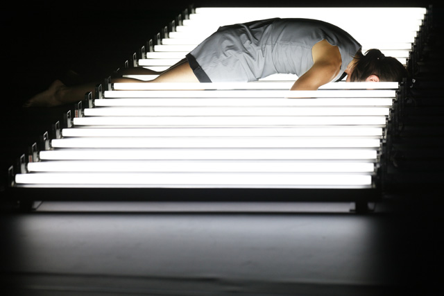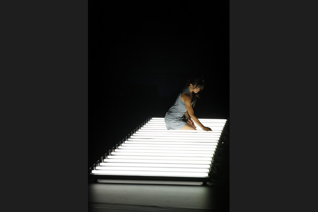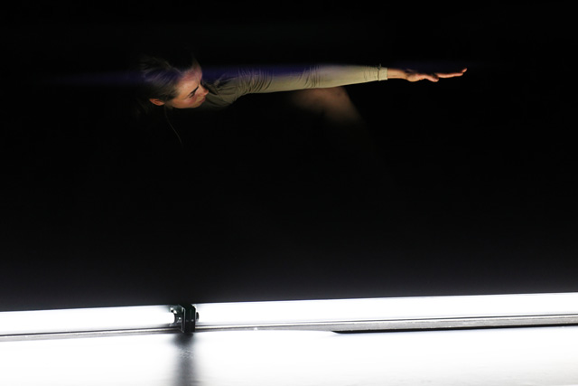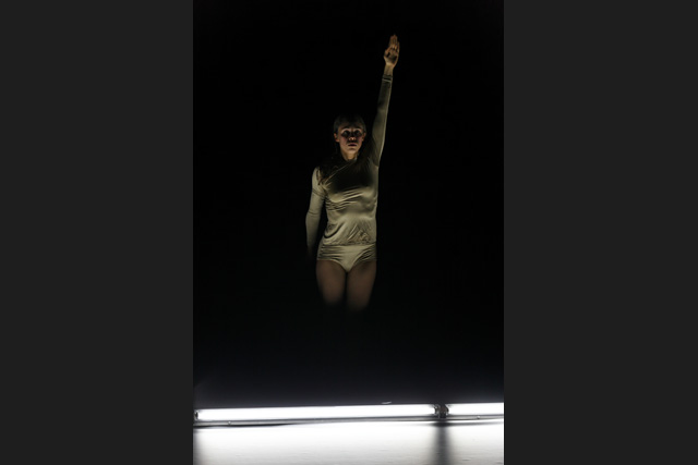 A row of neon lights, a line of light on which the body places itself in an unstable equilibrium until it floats in space, between meditation, obstinacy, flight and swings towards another universe of perception. From appearances to disappearances, Marthe Krummenacher, William Forsythe's former dancer, shows astonishing expressiveness.
