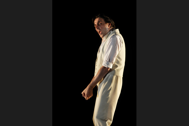 This text is a loop. It gives rise to memories and imposes itself as a return to origins, those of a trio that formed at the end of the 1990s. The writer Olivier Cadiot, the director Ludovic Lagarde and the actor Laurent Poitrenaux invented at the time The Colonel of the Zouaves. An incredible stage project in which the voice, the words, the gestures and the postures of a single immobile man are worth more than a thousand different characters and all the mad races throughout the world. With A Magus in Summer, after three shows broadened to the group, the Cadiot-Lagarde-Poitrenaux trio return to the form, solitary but peopled, of the monologue. "In this text," the author explains, "our hero Robinson no longer moves. He shuts himself up, he no longer builds huts in the trees. His island is interior, he becomes the archaeologist of his daily life." A life of a magus whose crystal ball is transformed into a tool of visions and sensations that are instantly effective: what he see, he experiences. Water flows onto his body, nature surrounds him, knowledge is within easy reach; he grasps the world, visualises it, understands it. What emerges from this is precious: a form of minimal survival through free evocations, a Proustian trip with a crumbled madeleine, a freeze-dried infusion of extreme lucidity. A show that is built on flashes of daily life, on tales of true facts. The modulated voice and the gestures that Laurent Poitrenaux deploys, the contrasting luminosity of Ludovic Lagarde's expression the writing in relief of Olivier Cadiot: the accumulation of data makes this magus one of the most dynamic and efficient tools of reflection ever. Like a machine that might have a body, a technology that might have a mind. ADB