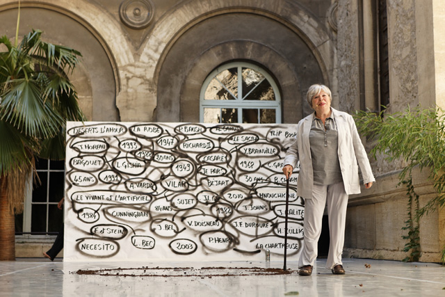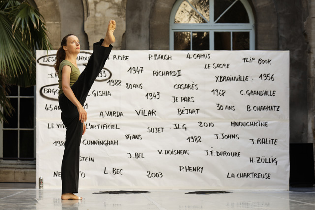 Lycée Mistral (day) academic purple yellow garter Cunningham / Chartreuse de Villeneuve (night) fake mosaic fountain noise Necessito Bagouet / Hospice Saint-Louis (day) crushed chickens dog phrenology apocalyptic cooking Popette / Cour d'honneur (night) cavalcade white mask red mouth Richard II Mnouchkine / Cour d'honneur (day) sun Léon Gischia my mother standing still / Cour d'honneur (night) So Schnell black shorts standing still very made-up chignon / street (day) Unedic [Driving Instructors' Union] your mother Assedic [unemployment insurance] your father This is a movement nothing to cancel / Cour d'honneur (night) Letters from Sarajevo Camille / Jeanne Moreau / Plaza of the Palais des papes (day) subject variation of the elected one the Coronation / Cour d'honneur (night) Richard II my mother large red gown vague gestures/ Jardin de la vierge (day) ma mother, Catherine Richard II Desert of Love / Cour d'honneur (night) Richard II again
