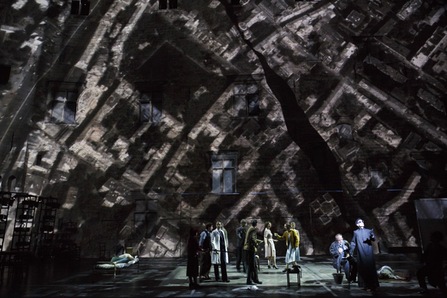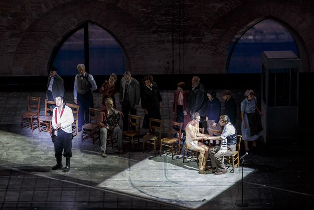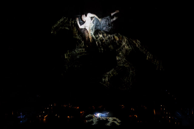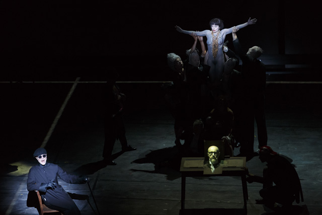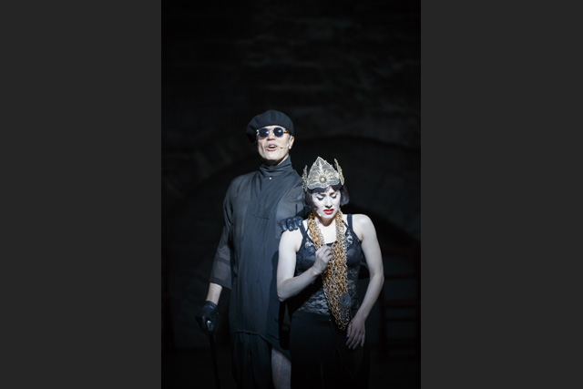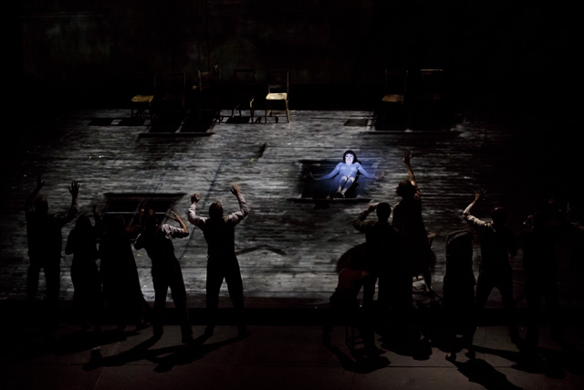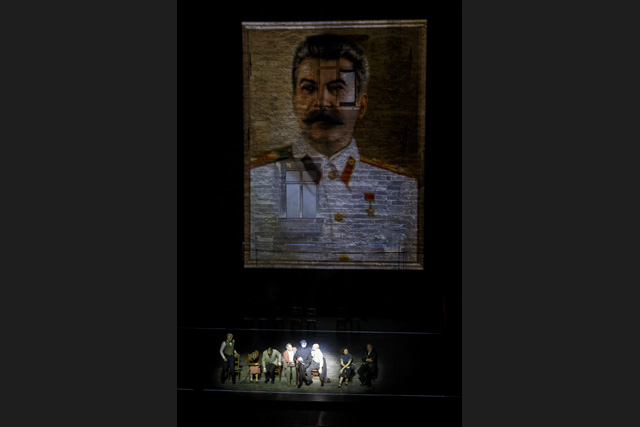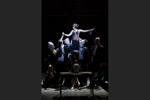 Which elements of this enormous novel - speaking as it does of love, of art and of politics - which elements do you hang on to when adapting the work for the Palais de Pape? Simon McBurney has decided to be faithful to the decidedly deconstructed construction of The Master and Margarita and to its narrative, which hurtles from Moscow to Jerusalem and from Heaven to hell. From this vast profusion, he has found a theatrical form and cleared a path to follow three intermingled stories, stories whose ends and whose connections will not become clear until the end of this looking-glass tale. In all this, the director permits himself all the elements which go to make up Bulgakov's writing: the passion and compassion of The Master and of Margarita in their love and in their freedom; the bitter and delirious comedy of the social and political satire; the clear-eyed and tragic attitude of a writer to his work; even the poetic and dream-like images which whirl the characters off into a fantastic other world. The Master is that solitary and oppressed writer in the image of a Bulgakov crushed by the tyrannical madness of Stalinist power; Margarita, that amorous, whole and courageous woman. Simon McBurney's power lies in his ability to combine the traditional crafts and methods of the theatre with the most sophisticated modern technology; so he can bring a horse to life with a handful of chairs but equally have his actors fly across the Moscow sky without lifting a foot of the stage. He joyously mixes up Bulgakov's imagined universes: Moscow, where Stalin lurks and watches; Heaven and hell, where Satan utters unbearable truths; Jerusalem, where we find Pontius Pilate and a philosophical Jesus bound closely together; and a psychiatric hospital, a refuge for desperate and exhausted writers. Helped by the astonishingly assured work of his actors and creative team, McBurney daringly plunges us in seconds from one story to another, letting us navigate with ease this labyrinth of thought and emotion. A novel conceived during the recent past in a twentieth century full of horror; a novel which denounces the corruption of the mind and sets against it the motions of the heart; a timeless novel, shaking up the tendency to apathy which can sometimes take hold of the human race. The Master and Margarita gives Simon McBurney and Complicite the raw material for this generous, poignant and imaginative piece of theatre and demonstrates once again that literary and theatrical expression are amongst the most powerful means of communication invented by humankind. JFP