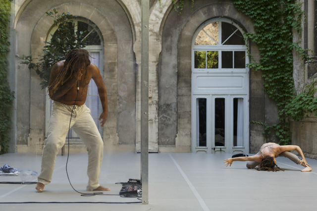 “I see an exploration in sound, words and gestures. / I see a bottomless well whose walls alone can be distinguished. / I see tensed muscles. / Tightened throats. / I see bodies that form knots. / I see in fact a millennial song, one of those songs that you sing with the voice and soul. / With the mind and the body. / I see a concerto for sleeping beasts on the threshold of an imminent awakening. / I see glidings, comings and goings and inversions in the proposals of each one's materials. / I see unknown lands. / I see the untimely meeting of two creatures.”
