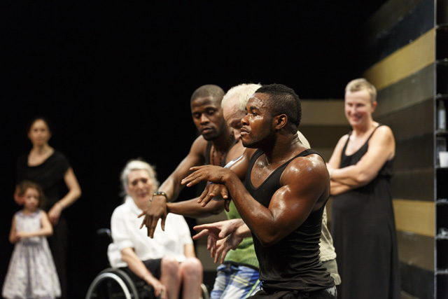 As opposed to a certain idea of the theatre that would have a director, for the duration of a play, thoroughly exploring a theme, Gintersdorfer/Klassen dare repetition and create a prolix and serial work to give the spectators the time to become familiar with their specific work process and to discover their protagonists. One of them is the dancer and choreographer Franck Edmond Yao alias Gadoukou the Star, who appears in the three plays presented in Avignon.
