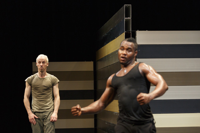 The End of the Western continues this face-to-face in the realm of politics. The five Ivorian protagonists and their two German walk-ons tell the tale of the crisis that shook Ivory Coast two years ago when Laurent Gbagbo and Alassane Ouattara invented the double democracy by each claiming victory in the presidential election. Portrait of a schizophrenic state, The End of the Western stages bodies that reflect the changing relations of leadership and exhaust themselves in contradictory words and movements.