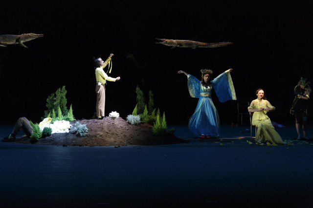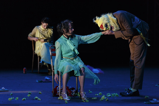 “Though nothing can bring back the hour / Of splendour in the grass, of glory in the flower / We will grieve not, rather find / Strength in what remains behind.” These verses by William Wordsworth read by Natalie Wood in Elia Kazan's film, Splendour in the Grass, punctuates, like a leitmotif, Angélica Liddell's All the Sky above the Earth. Wendy's Syndrome. Wendy is the character Peter Pan takes to his island. Here, the island isn't called Neverland, the imaginary country, but Utoya, the Norwegian island where 69 young people, who were shot to death by Anders Breivik in 2011, were condemned to never grow old. The best of worlds, perhaps. In this work, Angélica Liddell incarnates a Wendy terrorized at the idea of being abandoned. That however is her fate, she who is incapable of any feelings other than love. “Loving is feeling abandoned at every moment. Genuine love is always sexual, mortal.” Whether she is an adult on Utoya, the island of eternal youth, or a foreigner in Shanghai, the land where the children of promise are born, Wendy is alone. As for Peter Pan, if he is the child who doesn't want to grow up, he is also the one who doesn't have a mother; so much the better, because he detests them. Angélica Liddell's Wendy also feeds on a violent hate for mothers and refuses to be one, even if to fulfil this desire she must give up the “supplement of dignity” that you acquire in taking on this maternal role. Far from mothers, families, clans and other herds, Angélica Liddell makes the stage an island. She peoples it with Indians, crocodiles, musicians, children without children and Peter Pan, who don't want to grow up, old people who don't want to stop dancing... In the vain hope of deceiving hate, feat and solitude. “Though nothing can bring back the hour / Of splendour in the grass, of glory in the flower / We will grieve not, rather find / Strength in what remains behind.” CV