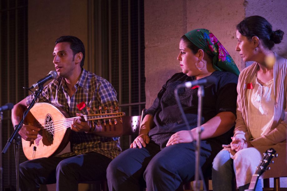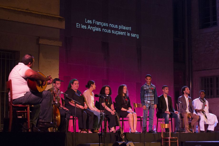 The latest version of The Nights of El Warsha, Haeeshek... is a music hall production born of the accounts of the 18 days that, in 2011, led to the fall of Egyptian President Hosni Mubarak and to the events that continue to shake Egypt today. Working from a recent creation, Zawaya: Testimonies from the Revolution, young writer Shady Atef gathered various accounts of those pivotal days and turned them into five monologues he gave to so many different characters: a thug bought and paid for by the authorities, an officer of the army, the mother of a young man killed in Tahrir Square, a football supporter, and a human rights activist. For director Hassan El Gertly, this is the opportunity to think about those testimonies: “the idealism of those 18 days remains a reference, but things are more ambiguous; this isn't a celebration (...), you get different points of view, and the stories are those we tend not to hear, not to tell.” But it is also an opportunity to hear a large repertoire of songs performed by the actors, storytellers, singers, and musicians of the El Warsha company. Moral quatrains of the ancient Banu Hilal saga, music hall from Cairo, revolutionary songs from Suez, workers' songs from Nubia, protest songs written by Sheikh Imam and Ahmed Fouad Negm, the joke songs of Mahmoud Choukoukou, etc. Haeeshek... is a uniquely Egyptian way of answering rage and injustice with sarcasm, of tending to one's pain and loss by celebrating the coming day.