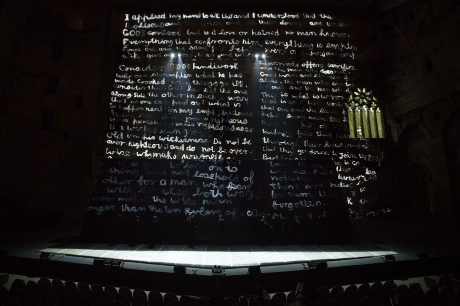 It's an outrageous phrase as much as an imploration. In this “I Am,” one can hear the pride of a man asserting his existence as a subject, the fervor of one who demands to be recognised. Lemi Ponifasio has surrounded himself with a whole people, made up of the artists of his company, MAU, but also of people he met in Avignon and in every city he stopped in during his tour. Together, in the Cour d'honneur of the Palais des papes, they stand. Whether they come from the other side of the world or from Avigon's inner margins, they are here to proclaim their existence to the powers that be, to take part in a ceremony dedicated to the twenty million people who died during the First World War. They become unknown and nameless, remind us that war spares no one, nowhere. From the Pacific islands where the conflict is still remembered today, Lemi Ponifasio summons the mythical, screaming theatre of Heiner Müller and Antonin Artaud, the plastic visions of Colin McCahon, the strength of maori and samoan choirs, and imagines the words and grammar of a universal language. The language God uses to talk with the dead, but also the one the writers of today use to talk with the ghosts of the past, melancholy witnesses of a century that saw men fail and fall again and again.