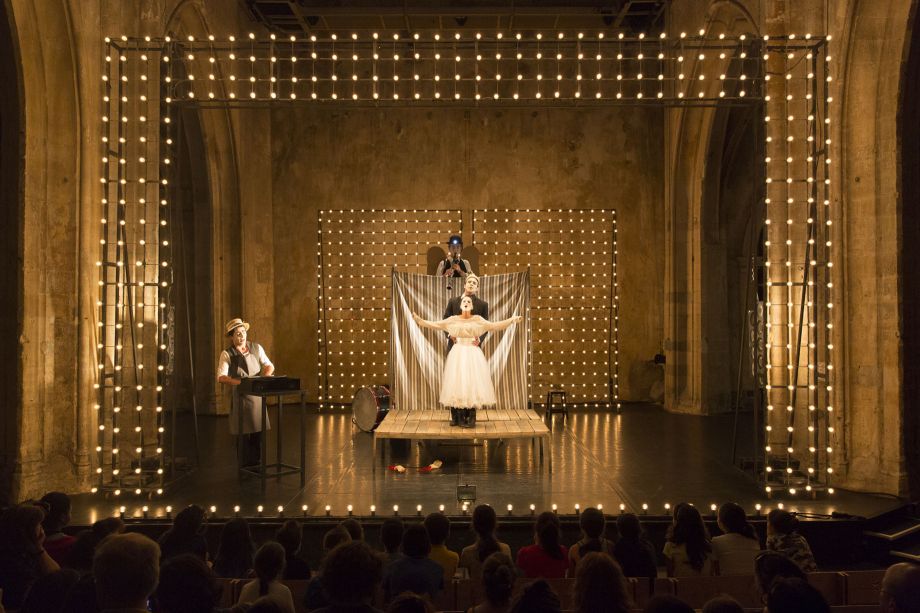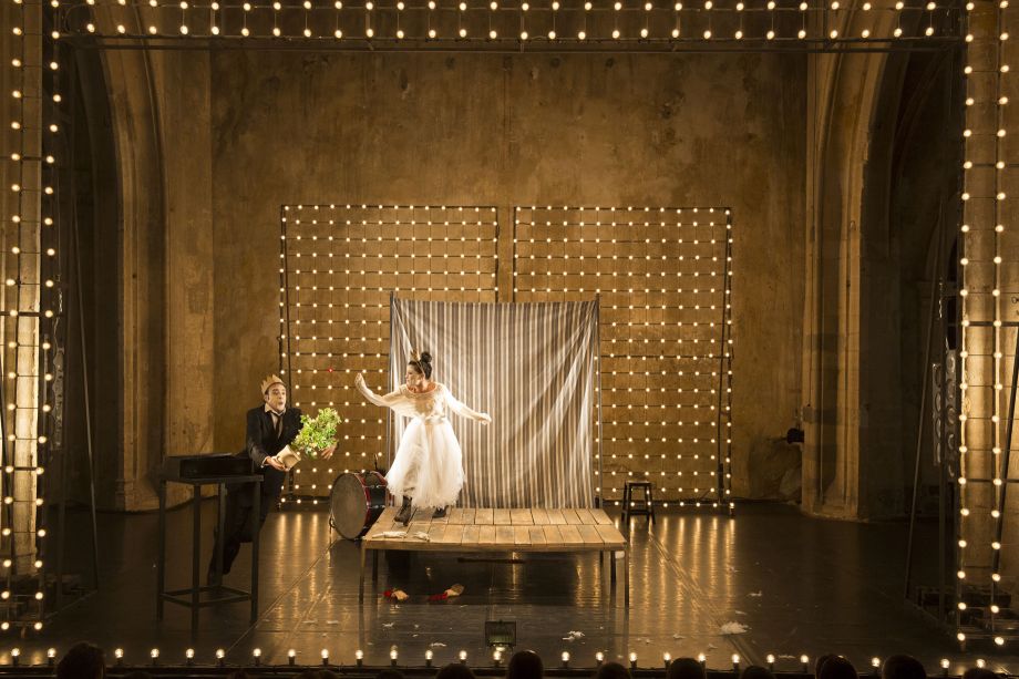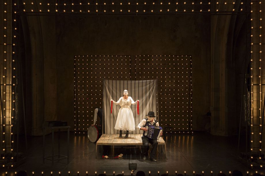 The brothers Jacob and Wilhelm Grimm spent years gathering the tales and legends of northern Europe, collecting several dozen folk tales and countless different versions, even sometimes changing the story so as to spare bourgeois sensibilities. Olivier Py found in their work the material for plays that would allow him to show young children the mysteries and conventions of “real” theatre, without ever talking down to them. The Girl, the Devil and the Mill is based on The Girl Without Hands, keeping the same basic narrative structure. It is the story of a naïve father who makes a deal with the devil without realising that it is his daughter he is sacrificing, and who ends up cutting both her hands out of fear of the devil's revenge. But the young girl flees and begins a journey fraught with perils and chance encounters, with a gardener or with a prince, but also with sleep and waiting. All those ordeals, all those encounters, all those necessary steps before possibly finding happiness allow Olivier Py to bring up numerous questions children often ask themselves without daring to talk about them: questions about death, the devil, love, war, memory, about the relationship between a child and his or her parents... An initiation journey that is never sentimental, The Girl, the Devil and the Mill is also a musical that speaks to the child in every one of us. Very simple by design, it oscillates between naivety and gravity, and ends with a ray of hope.