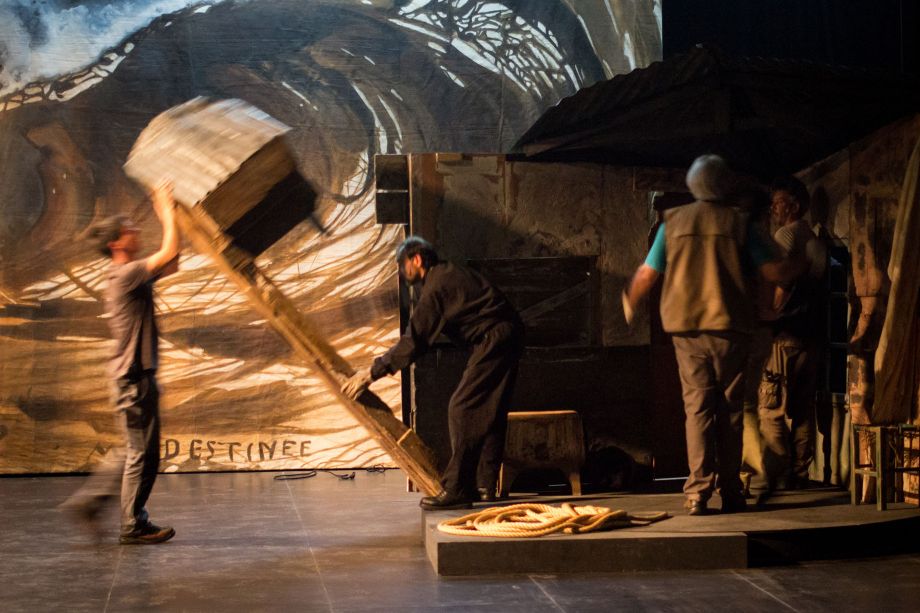 All is dark. The mother is worried, sitting alone in the decrepit cabin. All night she waits, fearing the worst for her husband, gone fishing in the hopes of feeding their five children, now asleep. When finally she decides to walk down the coast to see if she can glimpse her husband's boat, she passes by the cabin of another mother, a widow, recently fallen ill. She opens the door and finds a terrible scene... Victor Hugo's How Good Are The Poor is an ode to adoption, but not a statement of principle. Yet the everyday heroism depicted in the poem is for Denis Guénoun nothing short of a concrete vision of goodness and ethics. Invited conjointly by the Institut Supérieur des Techniques du Spectacle and the Festival d'Avignon to direct the graduation show of the stage managers and engineers of the class of 2014, Denis Guénoun has a long history with the poetry of Victory Hugo. Seen as a vector of the values of the Republic at school, the poem How Good Are The Poor was taught until the 1960s everywhere on the French territory, including in Algeria, where Denis Guénoun grew up. He therefore thought that, to bring together a group of professionals of the theatre who aren't actors, the formal constraint of the poem could be like a springboard, the many symbols a challenge to rise up to. Defining poetry as the ability to see, in every concrete act, a potential transport, Denis Guénoun asked the engineers he works with to make it their law: to use their knowledge and the practical means at their disposal to transfigure the real and make theatre happen.