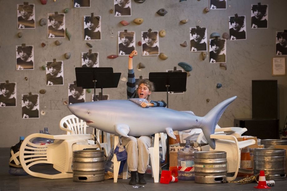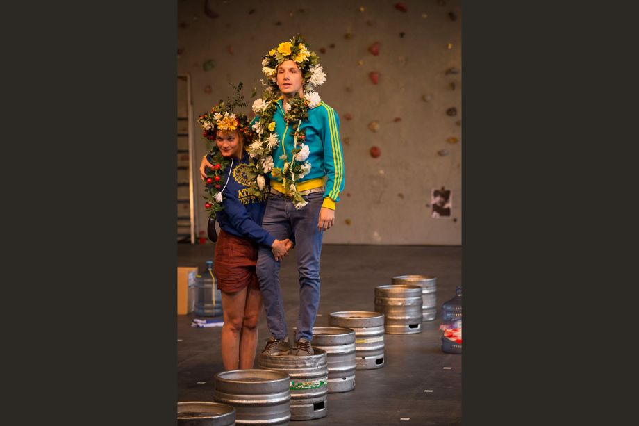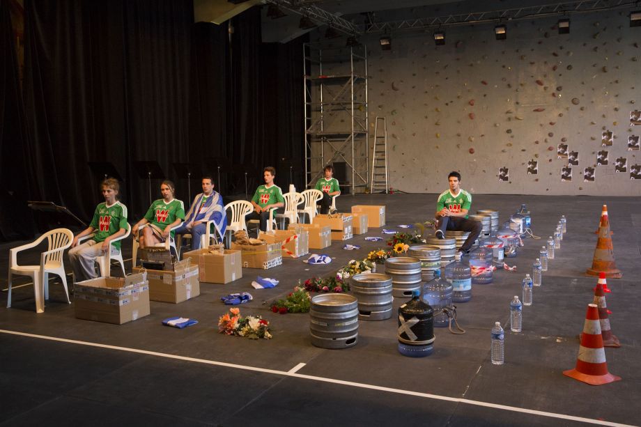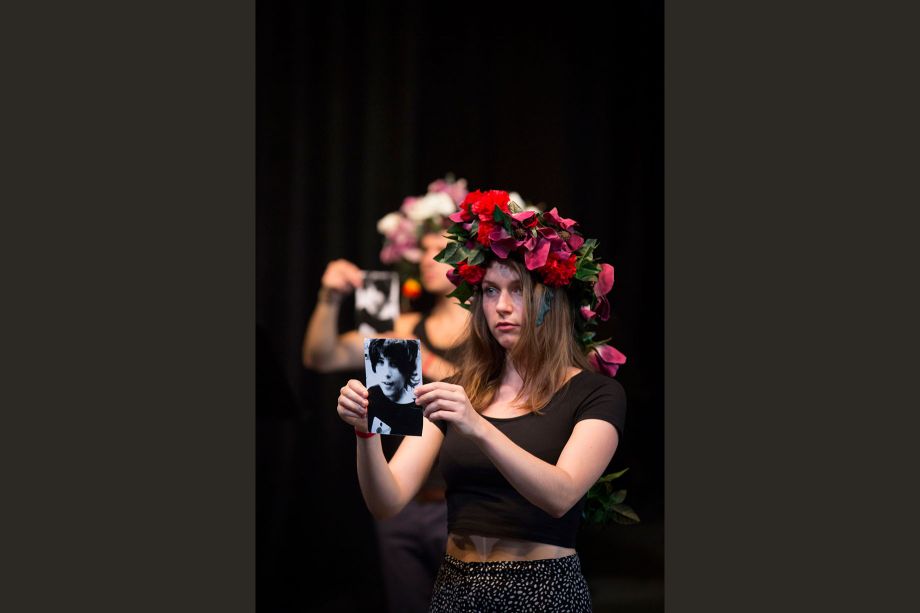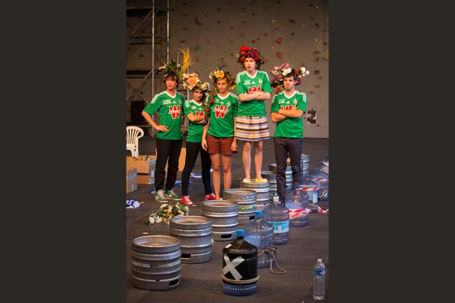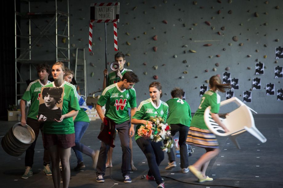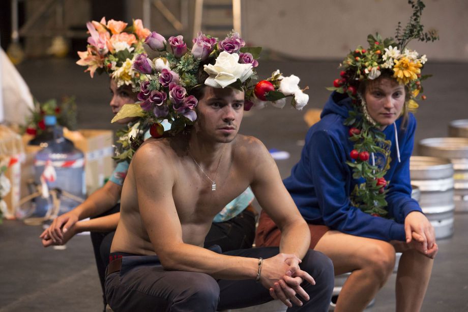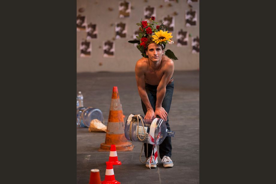 In a time we guess to be very close to ours, a city reminiscent of Athens and occupied by a foreign army is the scene of violent events. An anonymous voice calls out to “the citizens,” encourages them to perform various procedures on their own bodies (shaving, castration, sex change, etc.), in a discourse that brings to mind a twisted orthodox liturgy. Wild stage directions regularly show up on stage, turning the world into chaos. Humans, animals, objects and materials, pieces of furniture, abstractions and feelings cross paths and collide. Michel Raskine leads a group of nine student-actors in the adventure that is this play written in a gushing yet controlled language, which keeps the audience at a distance but hits them in their flesh. With his actors, he offers both a choral dimension and an individual one. For the director, the country, the city, subjected to torments by Manolis Tsipos, speaks of our fears, of the places we live in. Yet the images we've been seeing from Greece for the past two years—demonstrations, the violence of police repression, the rise of poverty and of the far right—are not invoked directly by the author. The students of the class 26 of the drama school of Saint- Étienne also find inspiration in the aesthetics of two Greek poets who lived thousands of years apart: Aeschylus and Theo Angelopoulos.