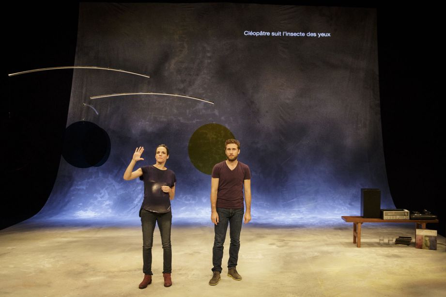 It is a well-known legend. Plutarch wrote about it in his Parallel Lives, Shakespeare turned it into a tragedy, Mankiewicz into a cinematic masterpiece. The year is 41 B.C., a republican general has just been given the eastern half of the Roman world to rule when, anxious to safeguard her people's independence, a young Egyptian queen goes to meet him in a gilded ship, surrounded by a crew disguised as nymphs. Their relationship will last ten years, or perhaps is it still going on... How then can you tell a story whose every detail is already known? “By telling the story:” Tiago Rodrigues's answer isn't ironic posturing, it is at the very root of his theatre. If the Lisbon director refuses to give in to “the monumentality of Antony and Cleopatra,” it is to allow us to watch his dancer-actors, Vítor Roriz and Sofia Dias, as through their own breathing they approach the tragic knot of this intimate and political relationship. So that we can watch, all together, how it enters our present. To do so, he has composed, on the very bodies of his performers, a vast cosmogonic poem that requires us to dive deep into the eyes of the other, at the risk of losing what makes us an audience: our belief in the illusion of the theatre.