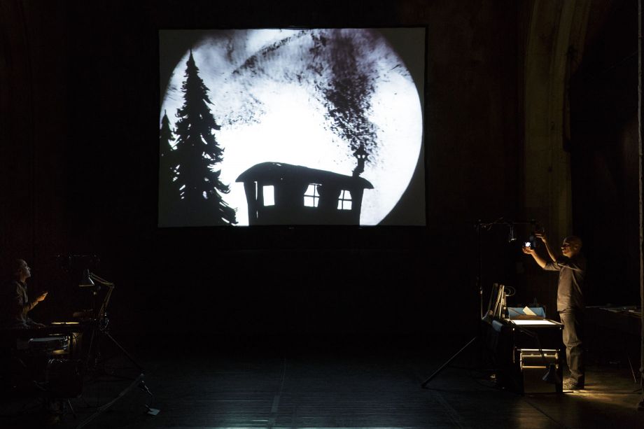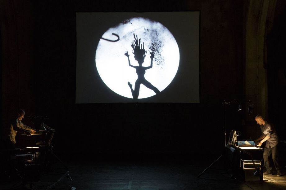 Created in 2008 at the same time as the eponymous show, STEREOPTIK brings together Romain Bermond and Jean-Baptiste Maillet, both visual artists and musicians. Based on a score they build and write together, every one of their shows is built under the eyes of its audience, live. Theatre of shadows, of objects and puppets, silent films, unplugged or electronic concerts, fairy tales and cartoons are so many fields and genres whose boundaries STEREOPTIK likes to play with. At the heart of the many forms of art that appear on the stage is one principle: to show the audience the technical process that leads to the apparition of characters, of scenes, of a story. Just as in Stereoptik, Les Costumes trop grands (Costumes Too Big), and Congés payés (Paid Vacation Time), Dark Circus's audience is free to let themselves be carried away by the images and stories projected onto the screen, or to see in detail what leads to the movement of the cartoon on the screen, how ink creates a silhouette on a transparent background, what instrument is used to bring it to life. Visual, musical, and without text, STEREOPTIK's creations arouse curiosity and wonder in audiences of all ages and all nationalities.