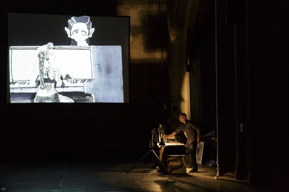 “Come one, come all, be unhappy!” This message echoes through the streets of a black and white city whose inhabitants come to the circus to get sadder. In the centre of the dark circus tent, a sinister ringmaster introduces a series of ever more tragic acts. The Dark Circus is the negative genesis of the joy brought by the circus of our collective childhood. Born within Pef's mind and handed over to STEREOPTIK, it proves entertaining, thanks to a caustic cruelty reminiscent of ancient gladiatorial games. However, a juggler, as unlucky as the acrobats, trapeze artists, and tamers who've come before him, drops a red ball out of his hat. It turns out to be the discordant note, the flashy touch of colour everyone was secretly waiting for. The unavoidable destiny of this circus is upended. Magic enters the ring, finding its place alongside the virtuosity of Romain Bermond and Jean-Baptiste Maillet, who animate instruments, puppets, and shadows. Thanks to the film that is created under their eyes by the drawing and music, the audience once again feels the wonder that fills the hearts of children when they hear a drum roll.