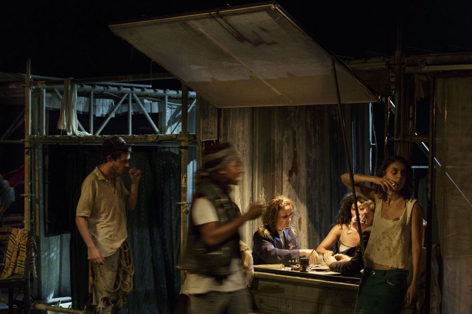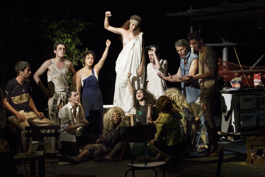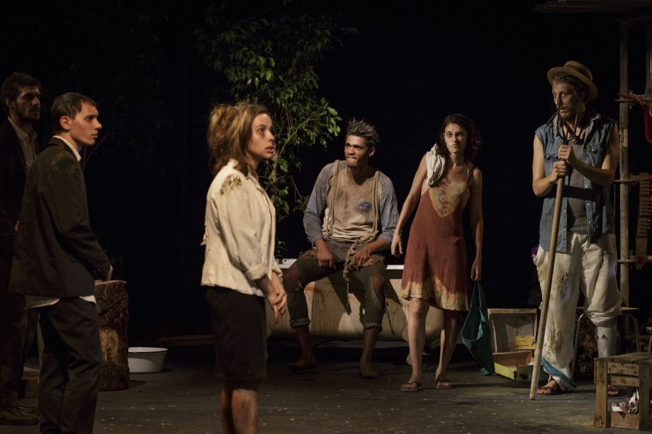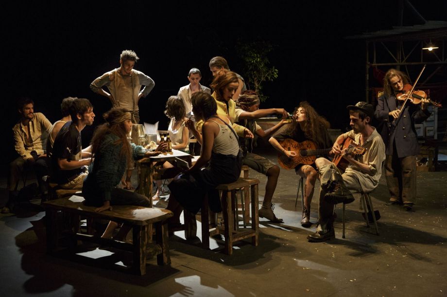 The École supérieure de théâtre Bordeaux Aquitaine has built strong ties with Argentinian theatre. Working with Sergio Boris, a director of the new Buenos Aires scene, the students of the third graduating class of the school have dived into the capital, attracted by its vitality and unique identity.Starting with this very real situation—fourteen young Frenchmen and -women and one Argentinian come together to put on a play—Sergio Boris has imagined a dramatic situation and explored the ideological symbols tied to both France and Argentina. Come to study theatre in Buenos Aires, a group of French students are struck by an unknown illness that forces them, inexplicably, to stay there. Two years later, they're living in an abandoned house, on the banks of the delta of the Rio de la Plata, in the neighbourhood of Tigre. The picture of health when they first set foot in Argentina, they now seem to be suffering from a strange disease. They hunt, fish, speak broken Spanish, cannot or will not go home. Their only human contact is with the Other, the owner of the ship bringing them supplies, who comes every two weeks.Then, on a stormy night, three new Frenchmen arrive, seeking refuge. From there, Sergio Boris asks the student-actors to question their own experience abroad and among strangers, and to reflect on the concepts of identity, of belonging, and of diaspora.