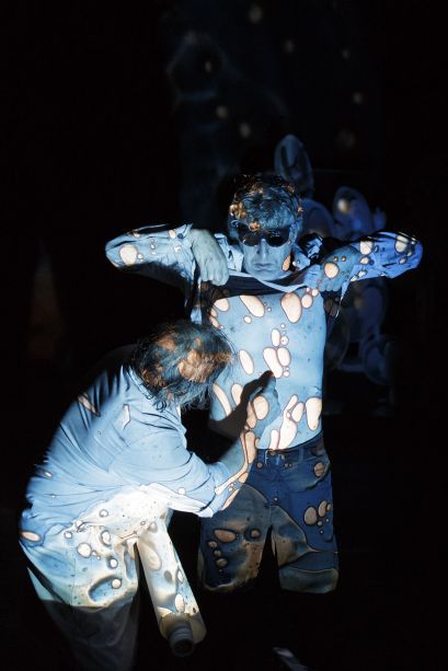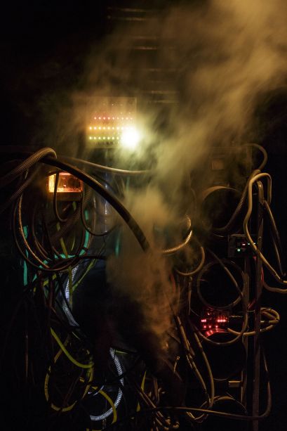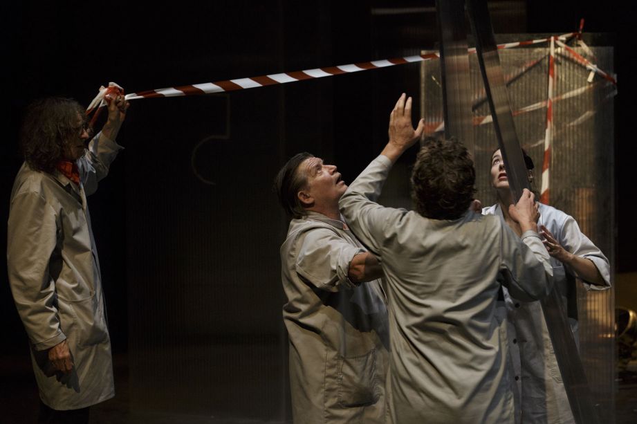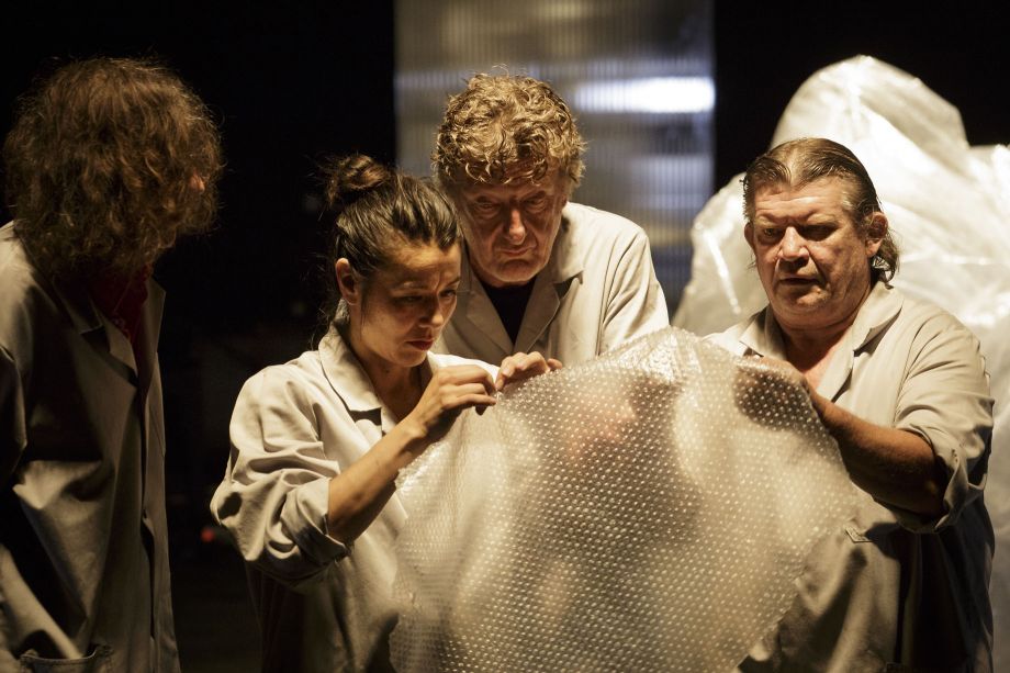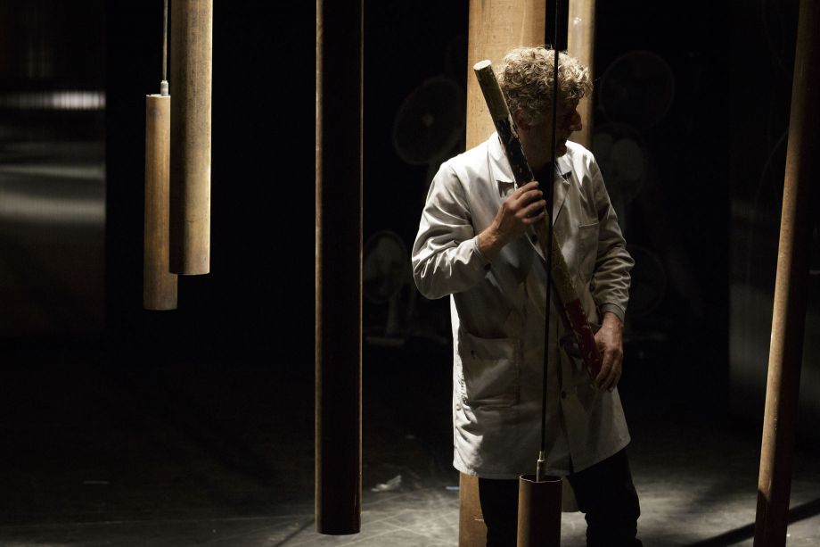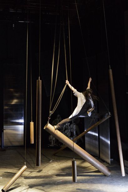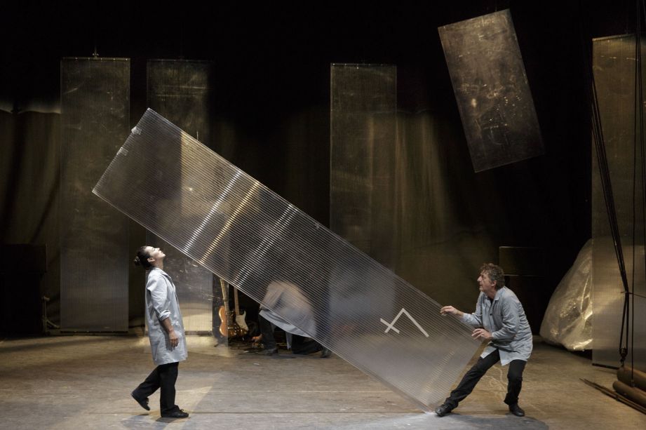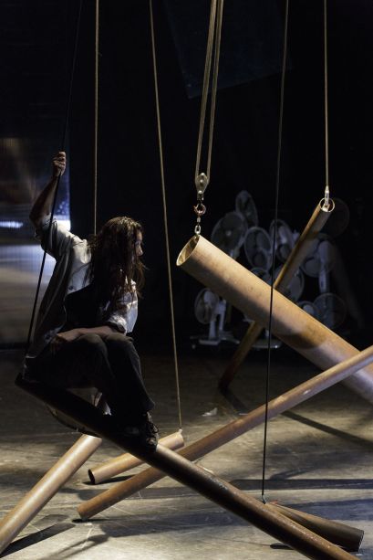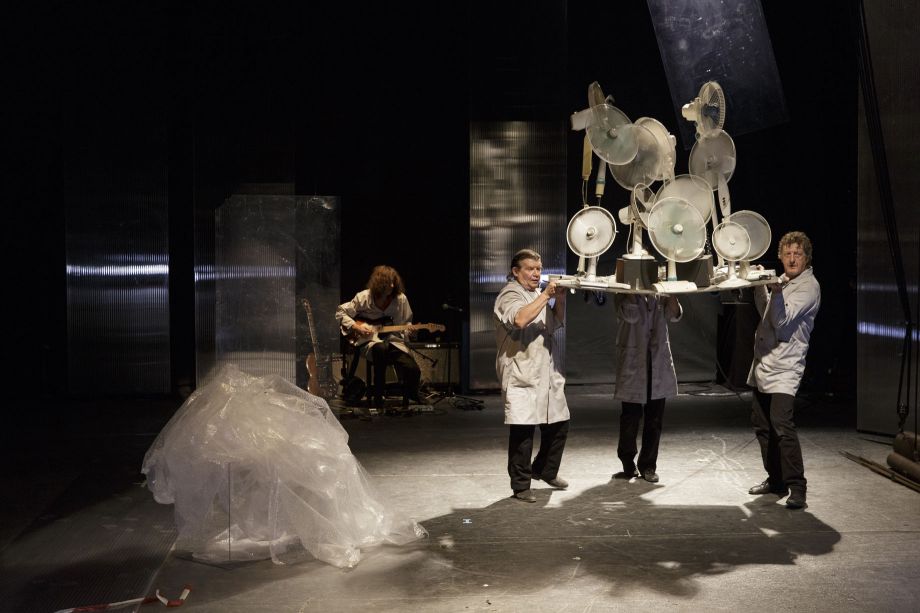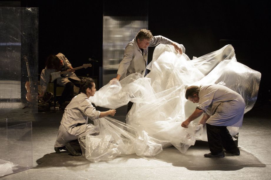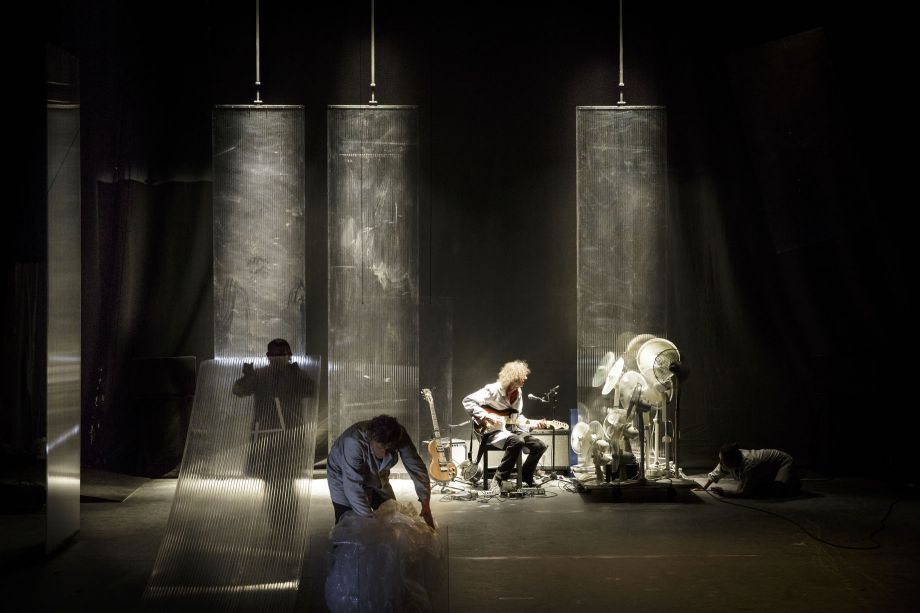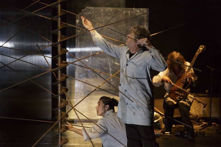 Pierre Meunier takes his faithful teammates on a new adventure, in which they land on the banks of the great inner world unfolded by Babouillec in Algorithme éponyme (Eponymous Algorithm). Called “disoriented” ever since she was a child, this young autistic writer travels other paths than the ones society chooses for us. Her poem, untroubled, like her thinking, by social niceties, gleefully explores the relationship between the freedom of her neurons and the order necessary to any contact with the outside world, with the others and their norms. Struck by the vital energy it contains, Pierre Meunier, working with Marguerite Bordat, chose it to fuel an electric, mechanical, and acrobatic carnival of busted-up engines. Always more likely to find poetry in what's not quite right rather than in what runs smoothly and fascinated by what in the banal is astonishing, the director bravely defies the interdiction to lean outside the window and to leave the tracks. With Forbidden di sporgersi, we might just glimpse the end of the tunnel, and get a better look at what, within ourselves, whirls, boasts, and gallops. Composer, scenographer, dancer, actors, and guitarist all explore this inner cosmos, whose darkness turns out to be illuminating.