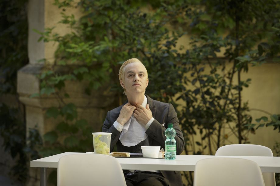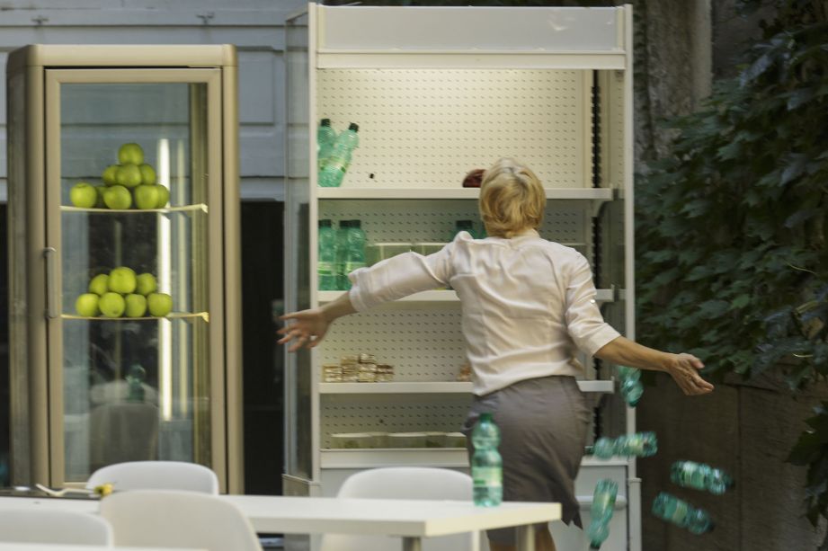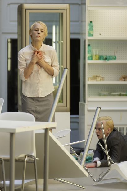 After Où les hommes mourraient encore (Where men would still die), which was named best discovery in 2011, and Keep Going, nominated for the artistic and technical creation section of the Prix de la critique théâtrale 2014, Aurelio Mergola, Sophie Linsmaux and Sophie Leso delve deeper into the insolent and quirky visual world they've created by diving into the everyday life of two antiheroes. Marta and Angus, as usual, have lunch in the staff canteen at work. But today, all of a sudden, Marta attacks her colleague, who tries in turn to strangle her. What might have happened between 12:45 and 1:05? Why this violent fight? What strange discovery could so disrupt their meal?