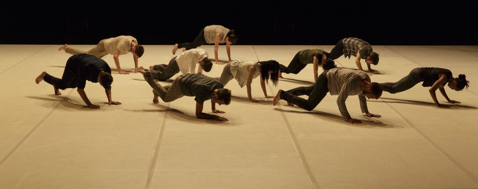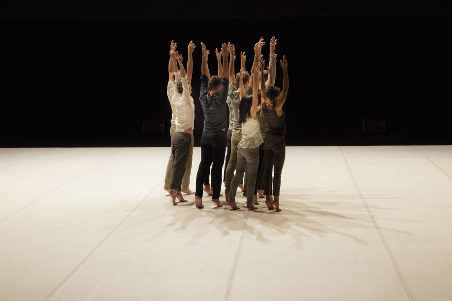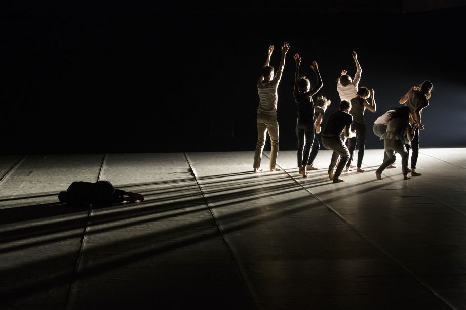 The idea of mastering fire, of deriving power from it, and of being galvanised by its energy is at the origin of many mythologies and many dances. Choreographic research isn't so far removed from it, and continues to play with bodies to animate this element, to keep it going, to share it. Which is why when Fabrice Lambert discovered the film Into Eternity, he saw it as the material for a new form of alchemy. Michael Madsen's documentary describes the construction of a national nuclear waste burial site in Onkalo, Finland. This construction site is gigantic, unthinkably so, based on the length of time it takes radioactivity to disappear: 100,000 years. This project requires a crazy projection in time and, to Fabrice Lambert, this makes Onkalo a sort of mythology in the present tense. A mythology of the sacred fire that has one key thing in common with the story of Prometheus, namely, that after one moment of victory, there ensues never-ending torment. On the stage, ten dancers create a moving geometry, orienting flows, sounding breaches and provoking breaks to feel this vertiginous experience of energy and time. In an empty space sculpted by light, they are the masters of a ceremony in which perceiving the infinite leads to seizing the present as the driving force of a precious common good.