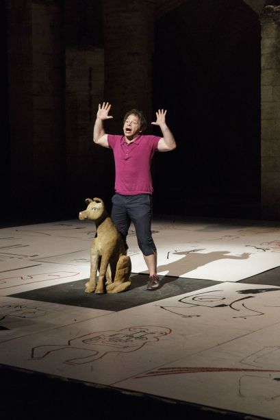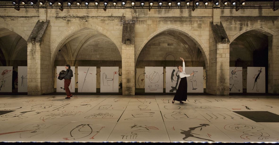 Le Vivier des noms (The Breeding Pool of Names) is first and foremost the title of one of Valère Novarina's notebooks, cracked open by the Animal Child at the end of Vrai Sang (The True Blood), which he directed in 2011. It is a collection of what the writer calls “logaèdres,” “logolithes,” “logogrammes,” and “anthropoglyphes,” a myriad names that sometimes start multiplying on their own and play within the space of the theatre and the bodies of the audience. A circular logic of reminiscence, much like at the circus, in an order that is alive because unfinished. This forest of names is the second one Valère Novarina has explored. In 1986, his very first direction, Le Drame de la vie (The Drama of Life), already let 2,587 names run wild, in a never-ending movement of entrance. Today, in fifty-two scenes, those “verbal spirits,” those countless objects will be said, formulated, projected, and ventured into the air by 1,100 characters, each with his or her individual name — although not all will appear on the stage. In the middle of those names, Valère Novarina puts the Historian, who orders the story to begin: Worntooth the dog knows that it will no longer appear, the Antipeople are plotting something, the Actor who flees others proves once again the opposite of what he's thinking, the Minister of the Exterior declares Latin to be a living language, the parietal Children come every fifteen minutes to empty a bag of preconceived notions... Over the two hours and eleven minutes of the show, the stage is dismantled and put back together, then filled with rebus. Time sighs: no one noticed it. The actors walk on the edge of language, between words that free and words that enslave.