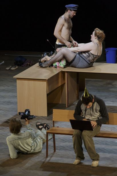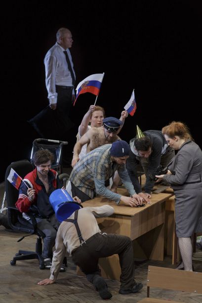 Through improvisations and extrapolations, Kirill Serebrennikov and his actors of the Gogol Center offer an updated version of Lars von Trier's The Idiots, retaining its economy of means and its pared-down aesthetics. Set in the Moscow of today, it follows a group of youths who decide to upset decorum and modesty by letting their inner imbecile take over.While Lars von Trier's characters belonged to a Danish society known for its calm and tolerance, Kirill Serebrennikov's encounter a people whose standards aren't quite as flexible. Focusing on this contrast between very strict conventions and the rejection of the rules of propriety, the Russian director brings “idiots” and “non-idiots” face to face on the stage, in order to question the actual role absurdity plays in human and social relationships, not only in Moscow but also everywhere else. In a society where any perceived behavioural failing can lead to anger and violence, Lars von Trier's initially amusing and idealistic experiment takes a turn for the dangerous, acquiring an inevitably subversive significance.