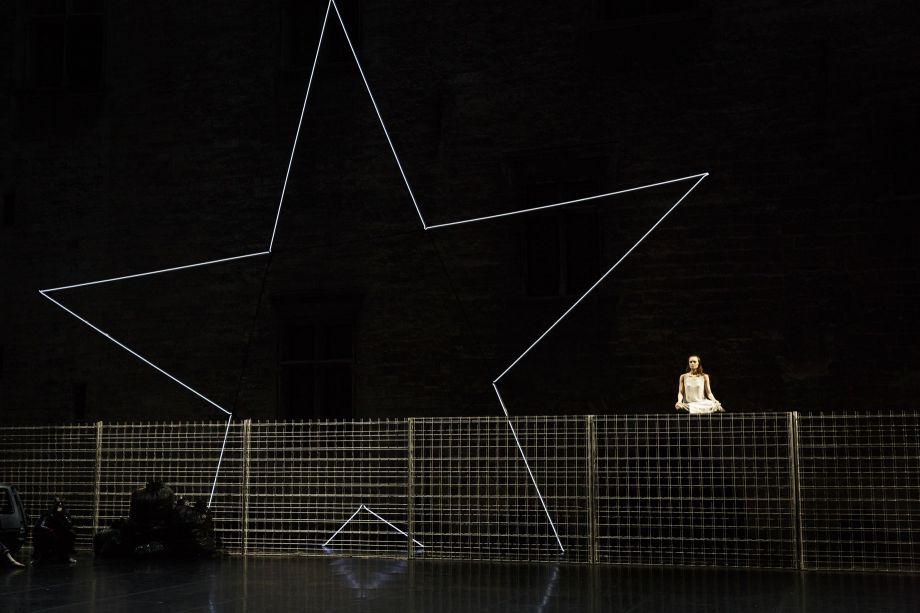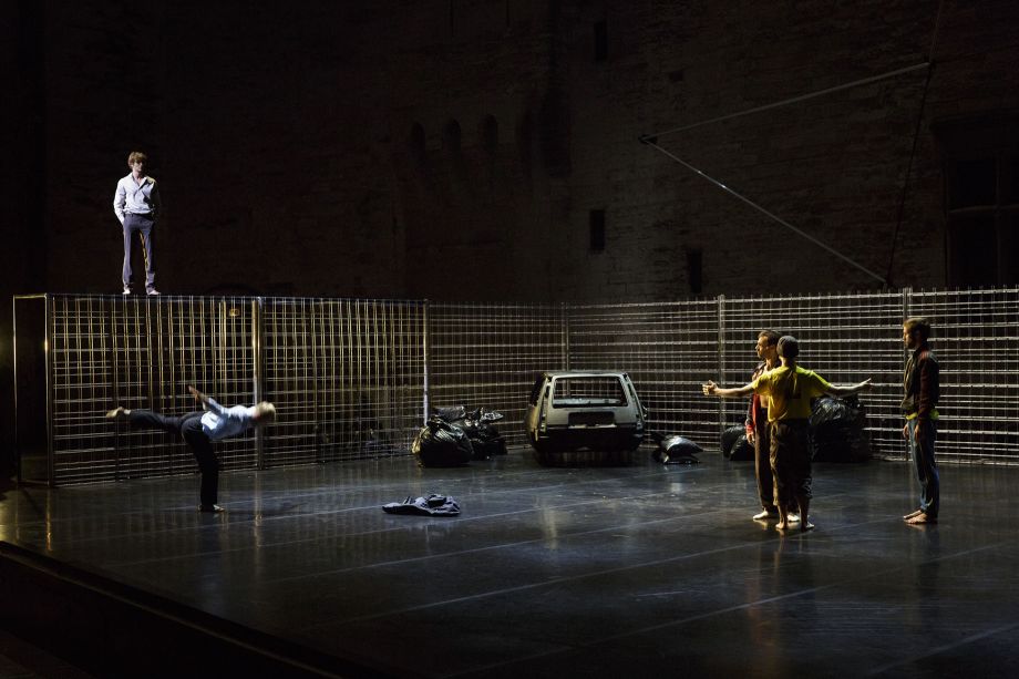A young man returns to Berratham, a place he left just before the war, leaving Katja behind. He is obsessed with the idea of keeping the promise he made her to come find her again. But he doesn't recognise the place where he spent his childhood, now little more than ruins, or the people still living there, left to their own devices... With this creation, Angelin Preljocaj returns to the Cour d'honneur of the Palais des papes, for another collaboration with novelist Laurent Mauvignier. Writing the libretto of this choreographic tragedy, he asks fourteen performers, dancers and actors, to be the witnesses of the repercussions of war on consciences. It isn't the first time the choreographer, born in France to Albanian political refugees, marries love to violence in one of his ballets. From Romeo and Juliet to “N” or And Then, One Thousand Years of Peace, his work is haunted by the dark metaphors of history. A theme that artist Adel Abdessemed knows perfectly well, too; his artistic practice, sometimes deemed radical, is a permanent questioning about violence and its cognitive power. For the show, he has come up with a zone able to multiply the dramatic intensity of those places where the men and women of Berratham need nothing more than a glance to survive.