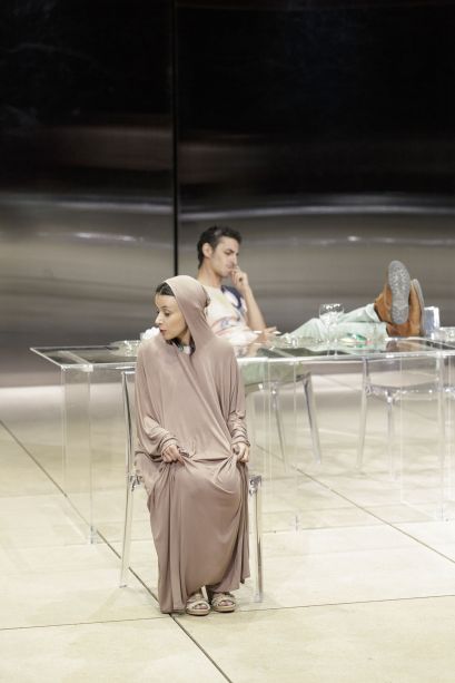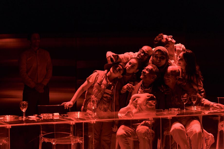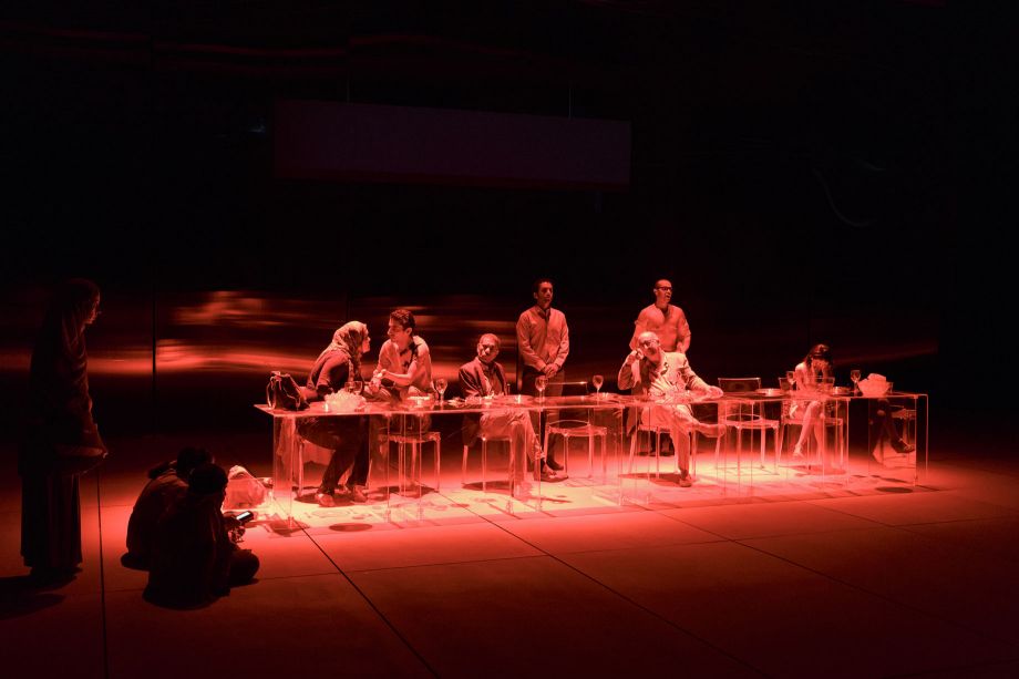The Last Supper likes to play with its misleading similarities to Christ's last meal. As in most paintings of the last supper, the guests seat side by side, an unnatural, even affected, seating arrangement. Because if they do share a meal and make every effort to be together, the characters of Ahmed El Attar's play also like to put on a show. They are representative, to the point of caricature, of Cairo's upper class. As post-revolutionary Egypt faces major political, economic, and social challenges, their conversations betray their carelessness, their frivolity, their contempt for the people. The director examines a ruling class obsessed with appearances and money, whose language and positions he uses to expose their vacuity. In an uninterrupted flow of words, his characters wallow in the void they have themselves created, to the point of absurdity. Fiction turns out to be more realistic than many documentaries, and all affirm that this period of “agitation” will eventually come to an end. The Egyptian director and his eleven actors work on language as the location and symptom of a vertiginous crisis of meaning; although it takes place in Cairo and is in Arabic, this last supper could very well be about all of us.
