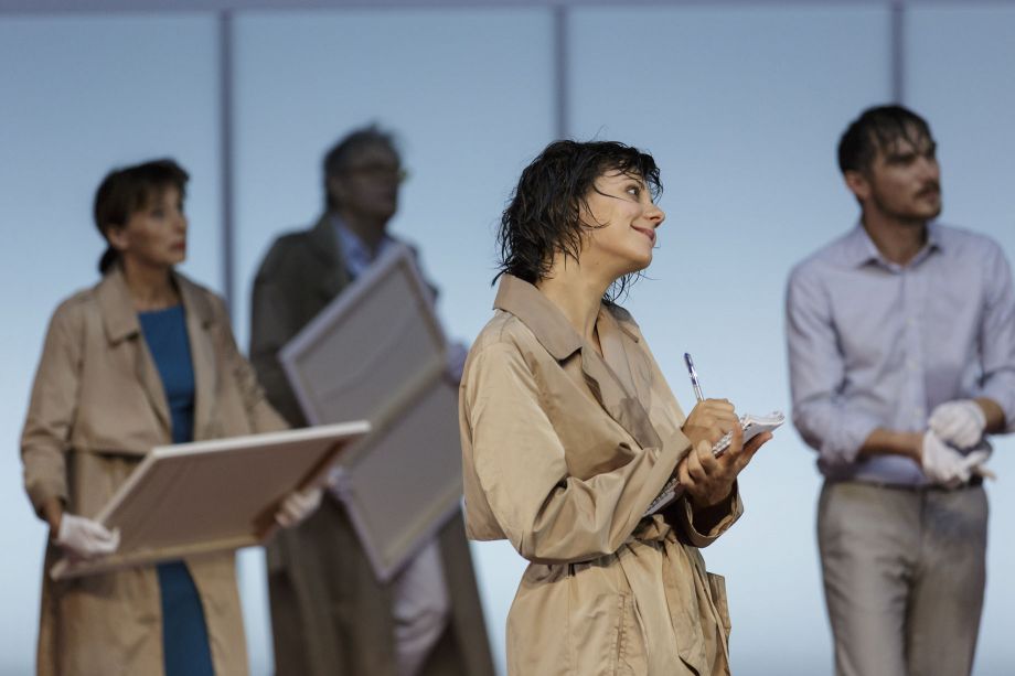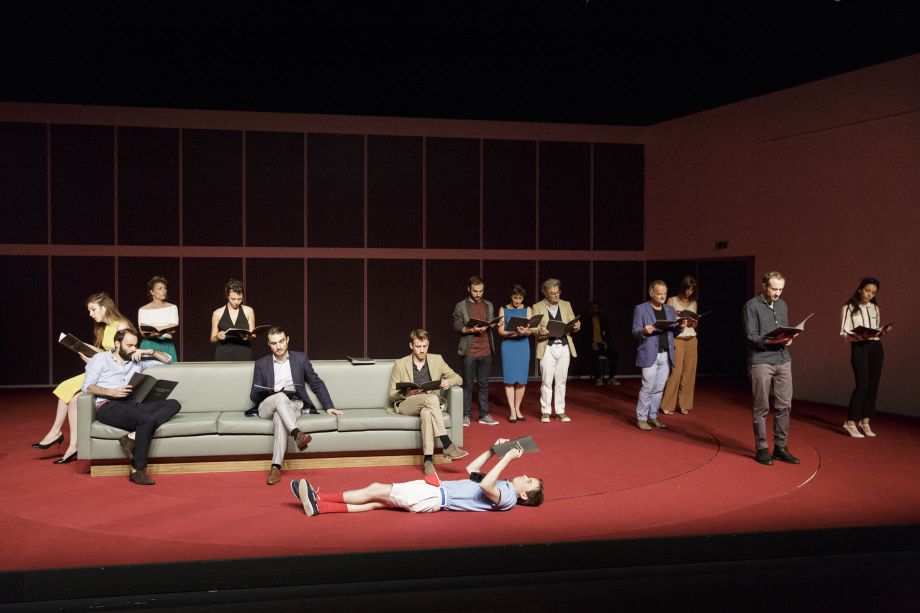 The group of the Friends of the Arts get together to discover the new exhibition curated by Moritz, the director of a museum lost in the wilderness.This confrontation with the paintings, and beyond that, with one another, soon reveals just how lonely and desperate everyone is. At the heart of Botho Strauss's Trilogy of the Reunions lies the question of representation; the representation of the real offered by painting, by the theatre, by photography or literature, and the representation that each and every one of us builds of ourselves to face others, or draw their eyes.This reflection about images, and about the image we have of ourselves, is an opportunity for Benjamin Porée to explore again the intimate crises of beings who have lost their bearings.Beings who are “not quite nobody but not someone yet” and who, even when they are called on to act against a decision to censor the exhibition, are all too ready to compromise their principles. There only remain the voices of the poet and of the art fanatic, who remind us that seeing works of art we have already seen before is a struggle against oblivion and goodbyes. By increasing the photographic effects that structure Botho Strauss's play, Benjamin Porée gives the audience the impression that they are always moving, like the visitors of a museum leaning closer to a painting, or choosing the right angle to examine a detail more closely.