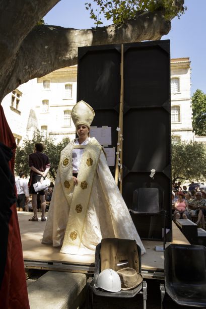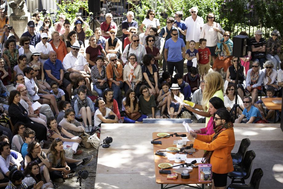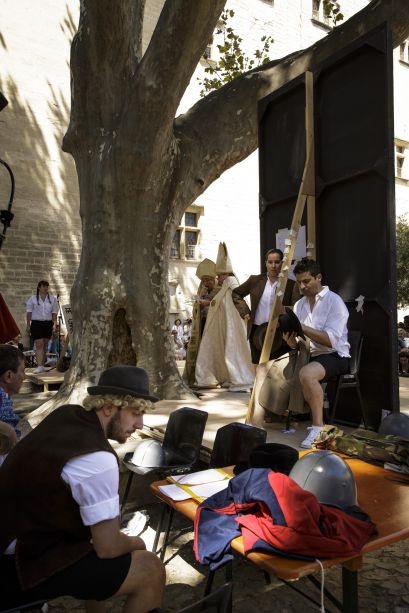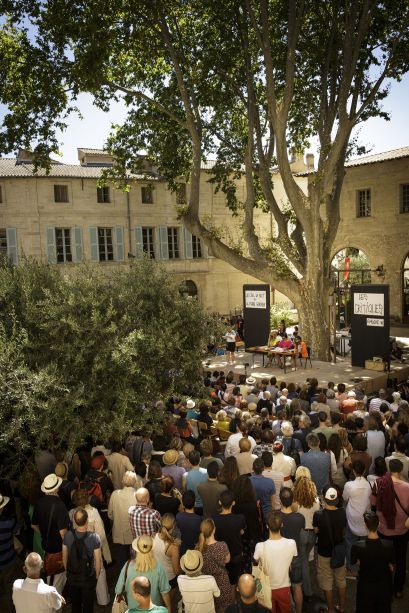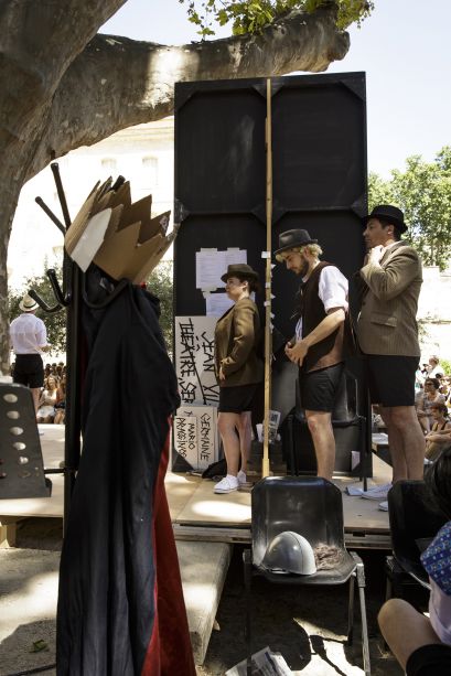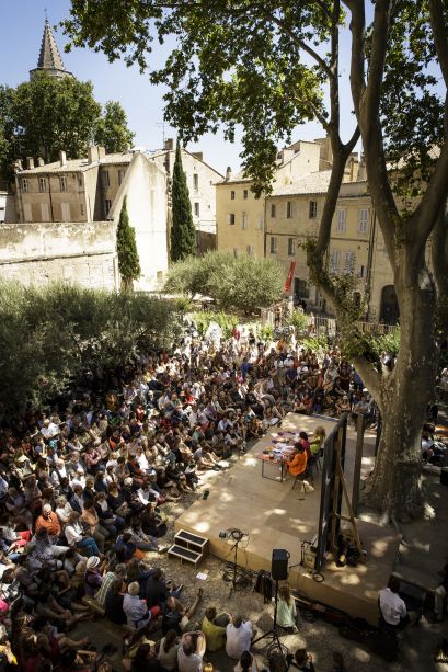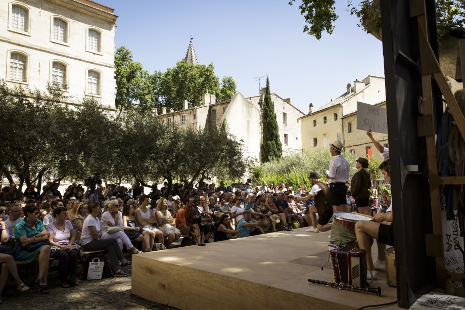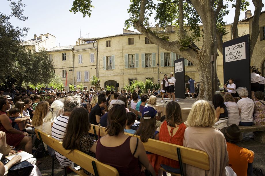 In 2015, the Festival d'Avignon launched Alain Badiou's series Plato's Republic. This project, which brought together artists and people from Avignon around a public reading, transformed the Ceccano garden and turned The Republic into a daily philosophical event. For its 70th edition, the Festival d'Avignon asked the company la Piccola Familia to conceive an original project that would take place in this public square. Using Antoine De Baecque and Emmanuelle Loyer's L'Histoire du Festival d'Avignon (The History of the Festival d'Avignon) as a springboard, the Piccola Familia imagined a series in 16 episodes to reinvent the past and offer a glimpse of a possible future. The professional performers of this adventure enlisted the help of amateurs from Avignon to create some of those episodes: writing workshops with children and teenagers led by Damien Gabriac in order to weave the future together, and acting workshops with adults led by Charline Porrone, based on accounts of past editions.