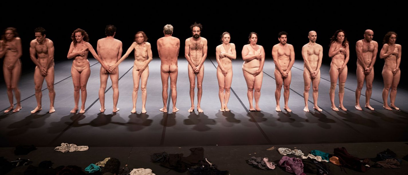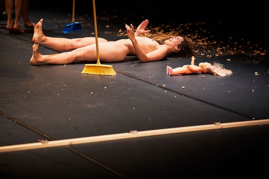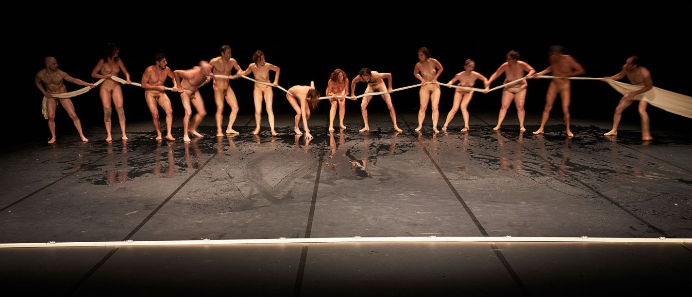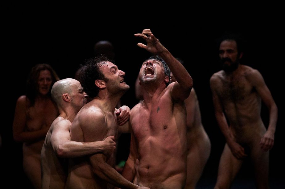 For a long time now Emma Dante's language has been made up of dialects, gestures, and accents. It is a southern language, trivial and popular, which the Sicilian director ennobled with metaphors and pushed to its limits within surrealist situations. Words, bodies, and rhythms which highlight, not without imagination, the brutality of the human comedy and which stand up to remind us of the social and political engagement of a community, whether a family or the community of the theatre. With Bestie di scena, Emma Dante continues her quest for honesty. No text, no set, no costumes, no music. But actors. Actors left to their own devices, actors up to the challenge. From backstage, objects, clothes, words come flying at them in unexpected ways. Forced to survive just as the group falls apart, they start transforming over and over again: into animals, children, idiots... For Emma Dante, who creates here a true poetic art in her quest for “the juice of drunkenness and torment,” actors are on the frontline of this attempt to break down the conventions of theatre. We are all those “imbeciles, without structure and without mask, facing the tragedies of the modern world.”
