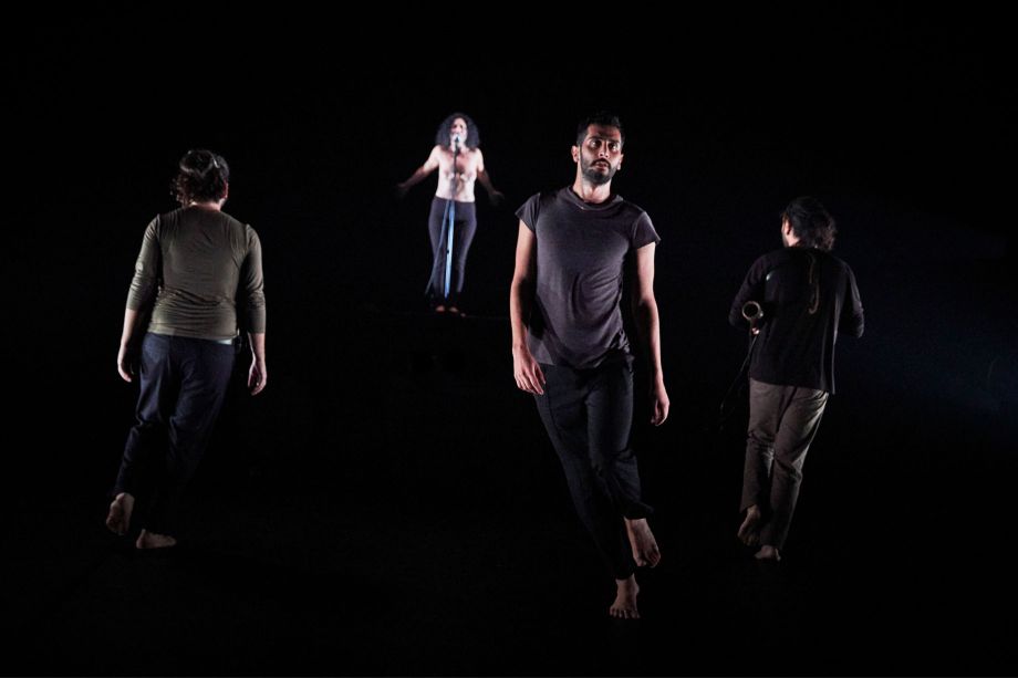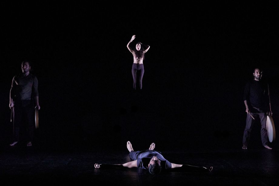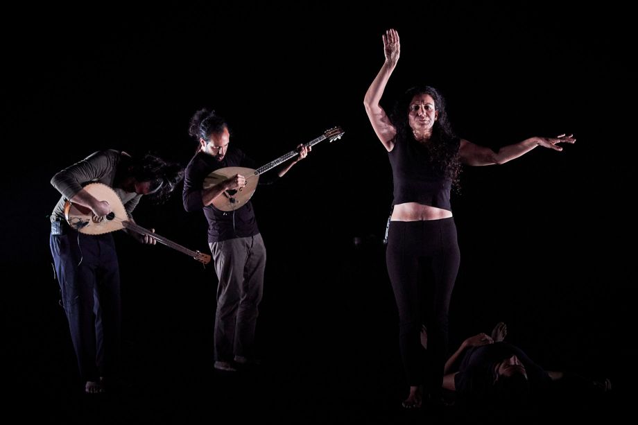 From a stage bathed in the darkness of dusk rises a woman's voice, singing a deep song. Drawn to that prayer, a dancer and two musicians enter. Thus opens the last part of a trilogy (Fatmeh, Leila's Death) exploring mourning rituals in the Shiite tradition, which Ali Chahrour invites us to experience as one would a funeral ceremony emerging from the black lands of Mesopotamia. A journey into the origins of Arab myths, led by a priestess—responsible for the crossing of dead souls into the next world—urging men to feel the grief of loss. Putting masculinity and its insistence on strength and heroism to the test, it reveals the weaknesses and helplessness of those men for whom crying is forbidden. One must sing, scream, chant, dance, and through the intensity of those deep and poetic lamentations, pull the pain out of one's body, exorcise violence, and set free a powerful force of life. With May He Rise and Smell the Fragrance, the Lebanese choreographer questions the taboos and suffering of a country torn apart by wars, towards a possible rebirth.