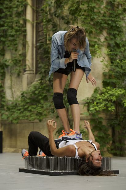 After studying philosophy, Justine Berthillot met Frédéric Vernier at the ENACR. In 2011, they join the CNAC together and create Sabordage (Scuttling), then their current duet, Noos. As a performer, she's worked with Christophe Huysman in 2014 and with the company Un loup pour l'Homme in 2015.
