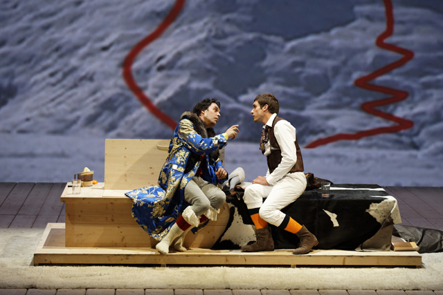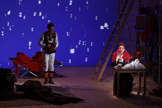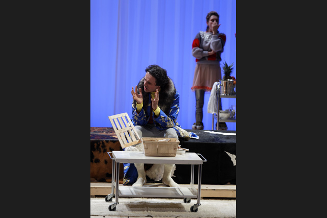 « Cour royale en exil à la montagne cherche conseiller image, chambre tout confort dans chalet atypique, artiste s'abstenir. » Telle est l'annonce à laquelle répond Robinson, héros du roman d'Olivier Cadiot que Ludovic Lagarde et la troupe de la Comédie de Reims portent aujourd'hui sur scène. Et voilà Robinson projeté dans un improbable royaume, régi par une Majesté déjantée, drôle et cynique à souhait. Chez ce monarque de droit divin, dans son chalet-château de sports d'hiver, tout est mis à mal par les pressions inhérentes à la vie contemporaine. La cour est en ordre de marche, menée par une maîtresse à la main de fer gantée de cuir, régentant le petit personnel tout en rêvant aux séries américaines. Mais tous les sujets sont tendus, plutôt tordus, entre le service traditionnel de sa Majesté et leur place - sinon leurs fantasmes - d'hommes et de femmes d'aujourd'hui : le chambellan fait de la luge et se prend pour un commercial, le grand écuyer chevauche des bobsleighs et dessine des logos, le docteur royal pratique la médecine douce, les princesses de sang portent des robes roses tout en s'inventant des destins d'executive women. Au milieu de cette cour aussi surannée que technoïde, Robinson, personnage-fil rouge des romans d'Olivier Cadiot, promène ses pensées extra-lucides et ses rapprochements surprenants. Il y cherche un nid, mais trouve surtout une principauté de comédie, saisie par le délire quand ce n'est pas la débauche, où la tyrannie se mesure centimètre par centimètre à la hauteur des fauteuils, où le pouvoir fait de l'œil à la communication et le système de la cour hésite entre la farce bouffonne et les portes qui claquent d'une pièce de boulevard. Pourtant, qu'on y fasse attention : les éclats de rire sont meurtriers. Ce roi, ces courtisans, cette langue de la flatterie comme de la satire, ces envies entre loisirs et culture de masse, cette cour lorgnant vers la gouvernance d'entreprise, c'est ici et maintenant ! ADB