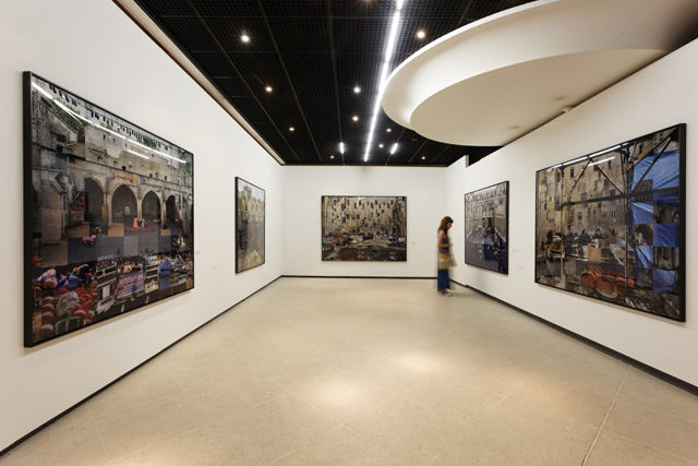La série de photographies grand format élaborée par Stéphane Couturier pour le Festival d'Avignon associe deux espaces temporels, deux moments distincts de la vie de la Cour d'honneur du Palais des papes, du Cloître des Carmes et de la Cour du lycée Saint-Joseph : celui de leur saison ordinaire, hivernale, et celui de leur saison théâtrale, estivale. Armé de sa chambre photographique et d'un solide point de vue sur les lieux, l'artiste a prélevé des images qui donnent à voir les édifices tantôt dans une certaine nudité des murs et des sols, tantôt dans leurs costumes de scène, avec acteurs et spectateurs. Il a opéré ensuite ce qu'il nomme une « fusion » des deux images, dans des compositions dont la tendance à l'abstraction est tempérée par l'identification possible de détails. Dans la série Avignon, il a innové à plusieurs titres sur ses « points de fusions » : en associant le jour et la nuit, en multipliant les présences humaines, en combinant le numérique à l'argentique. Il a élaboré enfin une trame en forme de damier, qui court sur l'ensemble de l'oeuvre et n'est pas sans évoquer un autre « plateau », scénique, pourvu de trappes propres à piéger le regard. Puisées aux meilleures sources du documentaire, les images retravaillées suggèrent au final un parcours fiction sur trois lieux phares d'Avignon, qui met en action un théâtre du regard, dont le spectateur peut devenir le metteur en scène. JLP