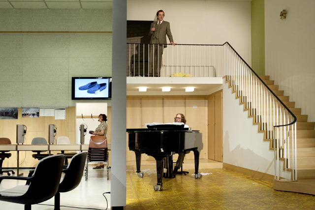 C'est en 1956, sur la scène du Mark Ellinger Theater de Broadway, qu'apparaît pour la première fois la petite marchande de fleurs Eliza Doolittle que son mentor, le distingué professeur Higgins, veut transformer en lady en lui apprenant à parler le bel anglais de l'aristocratie. Aujourd'hui, Christoph Marthaler s'empare, en la décalant bien sûr, de cette émouvante histoire pour en faire un moment de folie musicale, imaginé pour la formidable troupe qu'il a réunie autour de lui. Si la syntaxe, la sémantique et la grammaire sont toujours au programme, c'est dans un laboratoire de langues, composé de petits box individuels hyperréalistes, que les héros marthalériens déclinent une nouvelle fois leur angoisse du temps qui passe, leur mélancolie désuète et leur si touchante solitude. Ils sont tous là pour, entre deux silences, faire leur numéro : chanter, seul ou en chœur, un moment de La Flûte enchantée, Douce nuit, Sainte nuit, les Scènes d'enfants de Schumann ou encore le tube de Wham!, Last Christmas. Car tout est possible dans l'univers de Christoph Marthaler : Karajan peut y croiser Frankenstein, la dégustation collective d'une pomme se transformer en véritable concert vocal, les exercices de diction se muer en un irrésistible comique de répétition. Par la grâce des chanteurs, acteurs et clowns qui le peuplent, ce laboratoire devient alors un jubilatoire espace de liberté, une désopilante rêverie sur la langue et le langage. JFP