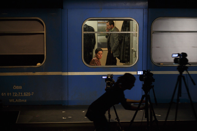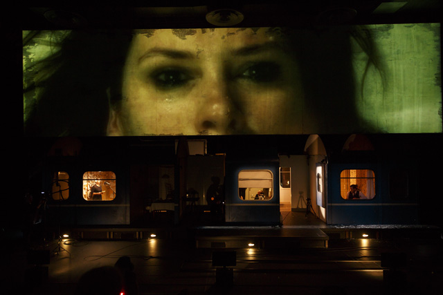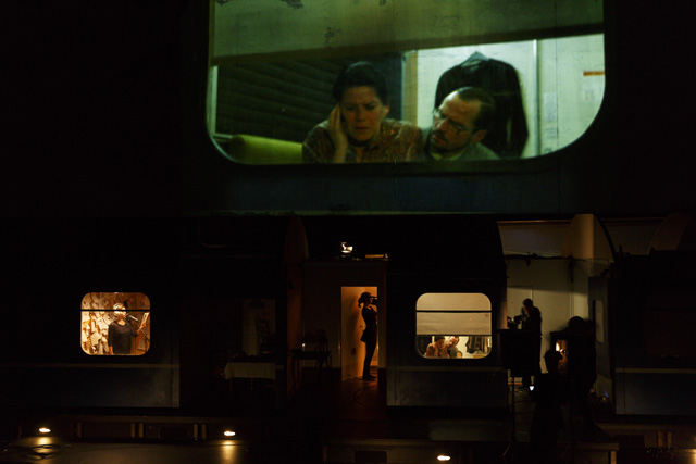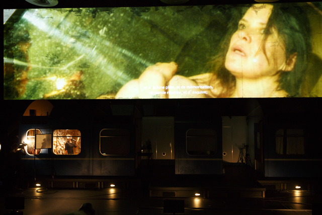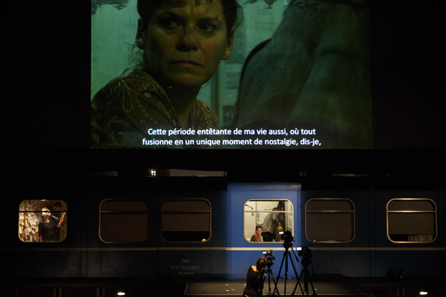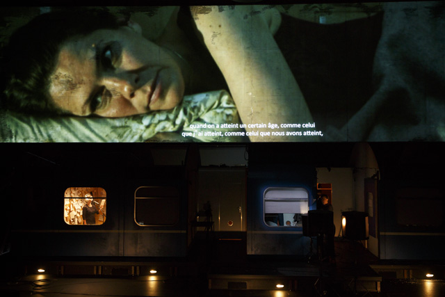 Dans Voyage à travers la nuit, Friederike Mayröcker écrit qu'elle rejette vertement la façon dont la narration linéaire organise notre expérience. Voilà qui ne pouvait que plaire à Katie Mitchell, dont les mises en scène refusent de se plier au corset d'un langage théâtral trop codifié. Sur scène, elle déploie toute la virtuosité de son théâtre filmé en direct pour servir l'ardeur du flux de conscience sauvage qui envahit le roman de l'écrivaine autrichienne. Dans un train de nuit reliant Paris à Vienne, Regina, la narratrice, s'astreint à écrire un discours pour les funérailles de son père et recolle des souvenirs fragmentaires de son enfance, enfouis dans un passé traumatique qui semble ne plus vouloir refaire surface. Cette nuit sans sommeil est peuplée de visions fugitives, dont la prégnance perturbante effrite la personnalité de cette femme dans la fleur de l'âge. Tout, même son compagnon, lui semble soudain étranger et lui inspire une profonde aversion. En quête d'elle-même, elle espère trouver dans une brève passade amoureuse la secousse salutaire qui l'extirperait de la somnolence dans laquelle a sombré son existence. Pour faire pleinement résonner l'histoire de Regina, Katie Mitchell lui offre un écrin scénographique des plus ingénieux, reconstituant sur scène un wagon du train qui file dans la nuit, que l'héroïne arpente comme on remonterait dans le temps ou comme on fouillerait dans son inconscient. À l'aide de gros plans, l'art multimédia de la metteure en scène scrute la palpitation charnelle de ses personnages et s'attache à décortiquer leurs émotions. Son esthétique de la simultanéité est ici mise au service de la mélancolie qui se dégage de l'expérience troublante et sensuelle de la narratrice, interprétée avec beaucoup de justesse par Julia Wieninger, l'une des actrices fétiches de Katie Mitchell. Métaphore d'une vie, ce voyage en train emprunte les sinuosités mystérieuses de la conscience humaine et entraîne le spectateur dans un subtil thriller psychologique. MS