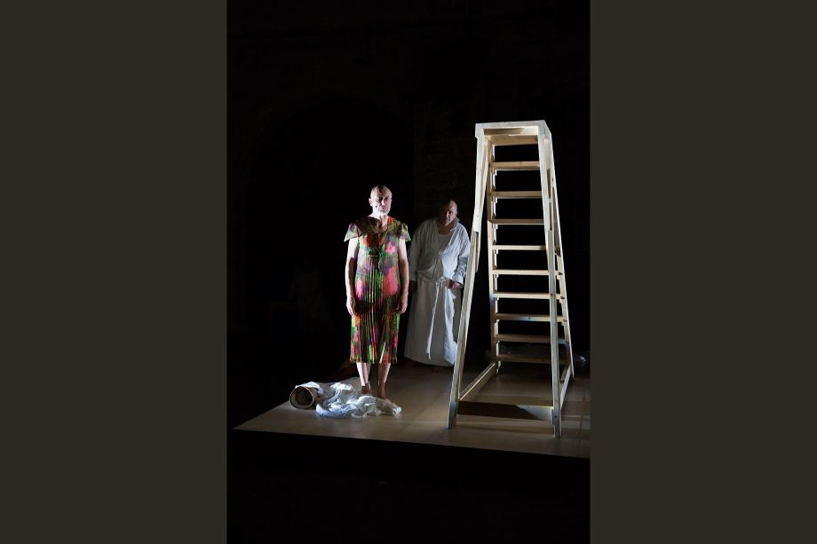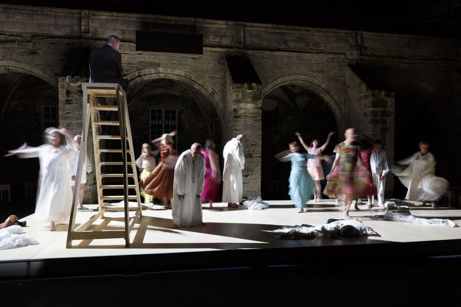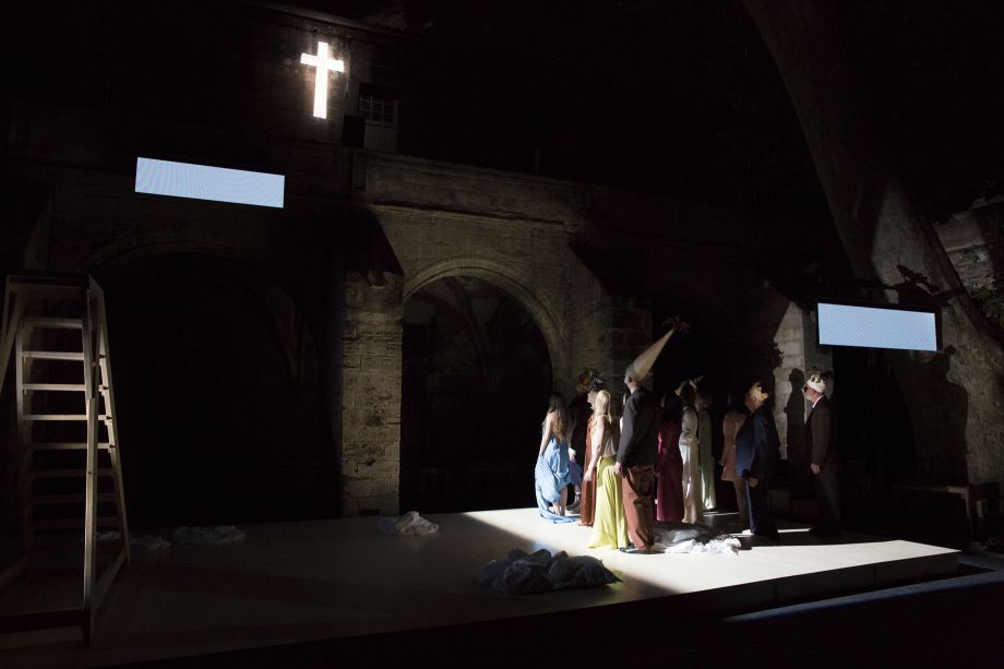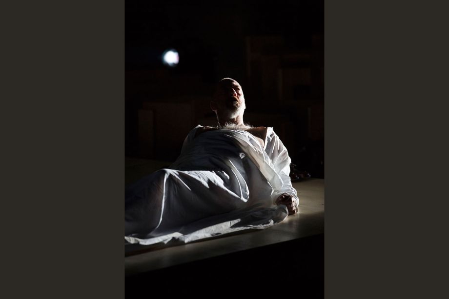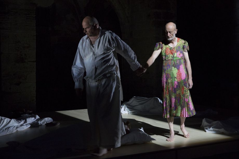 Réunissant en un spectacle deux courtes pièces de Michel de Ghelderode, Josse De Pauw s'engage dans une réflexion pleine d'humour, pleine « d'absurdisme » belge, sur la mort qui s'annonce dans Le Cavalier bizarre, ou sur la mort qui a déjà fait son oeuvre dans Les Femmes au tombeau. En passant d'une salle d'hospice, où six vieux attendent qu'un guetteur leur dise ce qu'il voit, à la maison de Marie, mère du Christ, où sont réunies, le lendemain de la crucifixion, les femmes qui ont accompagné Jésus, Josse De Pauw veut faire entendre l'écriture de Michel de Ghelderode avec laquelle il entretient un lien très fort. En association avec le musicien-compositeur Jan Kuijken, ils poursuivent l'aventure du théâtre musical qui tresse les mots et les notes. Une musique qui doit offrir « une expérience quasiment physique au public ». Musique symphonique enregistrée pour accompagner les vieillards attendant la visite de la mort, musique pour choeur de femmes dans la maison de Marie, mais toujours en complicité, en écoute, en association avec la langue de l'auteur. Il y a de la farce, du burlesque et du grotesque dans cette écriture intimement liée à la culture flamande, de la tragédie aussi lorsque les personnages nous tendent un miroir, reflet de nos inquiétudes face au vieillissement et de notre relative indifférence aux drames qui nous entourent.