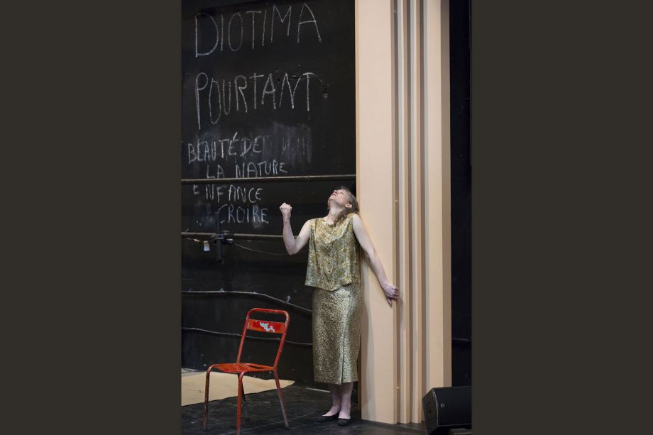 « Nous sommes tous des Grecs », écrivait le poète anglais Shelley, fasciné comme Hölderlin par la civilisation hellène. Mais la Grèce poétique que traverse le héros Hypérion est à la fois celle de l'Antiquité et celle contemporaine du poète, une Grèce qui lutte pour redevenir indépendante et pour quitter l'Empire ottoman. Roman épistolaire, roman philosophique, roman politique, roman d'amour, Hypérion est à la fois un hymne à la jeunesse, à sa fougue, à son engagement, mais aussi un constat pessimiste. Pour Marie-José Malis, cette dualité correspond bien à l'actuel état du monde, particulièrement dans notre Europe en crise. Il faut donc, comme Hypérion, partir à la recherche des « possibles », à la recherche des principes sur lesquels on peut, peut-être, repenser « le » et « la » politique. Avec sa version adaptée d'Hypérion, elle imagine un dialogue sensible avec les spectateurs à l'écoute des mots du poète, pour ne pas céder au nihilisme, pour faire revenir « la jeunesse du monde » sans pour cela effacer les déceptions et les embûches. « Vivre sur terre comme des dieux », souhaiter un destin héroïque pour tous ceux qui luttent, assumer qu'il n'y a pas de révolution sans poète, voilà ce qui se dissimulerait derrière cette Grèce adorée, mère de toutes les patries. Marie-José Malis, en empruntant les mots de Hölderlin pour en faire du théâtre, trace les pistes d'un possible nouveau chemin, exigeant, exaltant et périlleux.