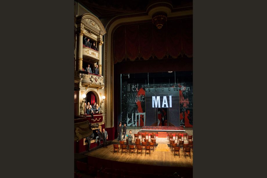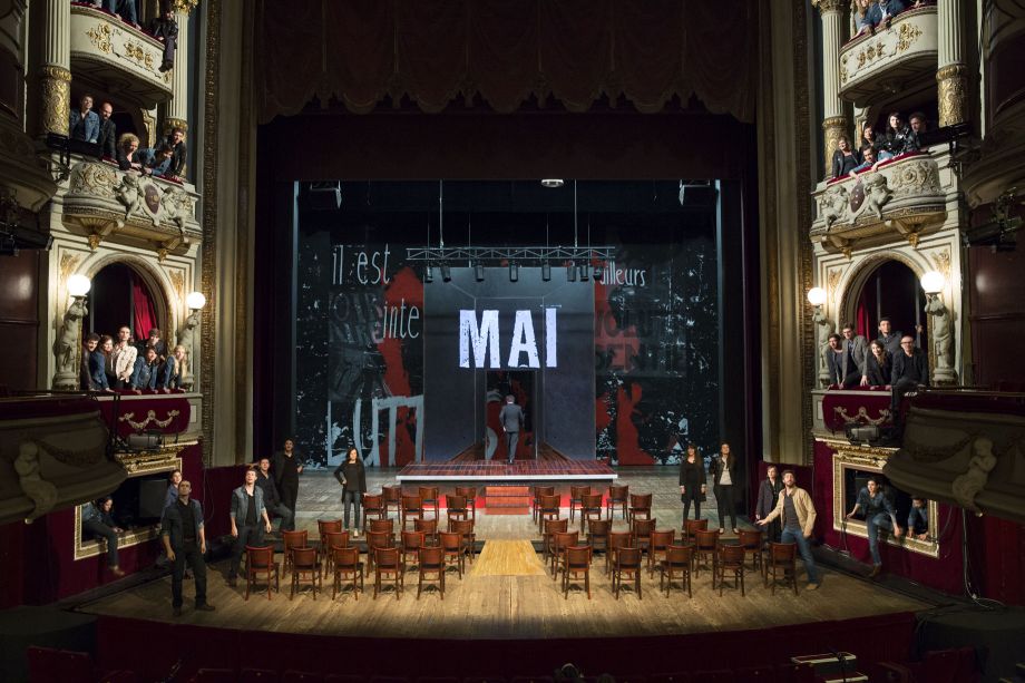 Béatrice Audry Madeleine Renaud, Stéphane Bernard(2) Un jeune, Un machiniste, Le ministre de l'Information, Le ministre de l'Intérieur, Le Premier Ministre, Le ministre des Armées, Un acteur du Théâtre de la Cité, Un délégué ouvrier, André Malraux, Laurence Besson(1) Une jeune, Une militante, Juin, Magali Bonat Une jeune, L'auteure, Olivier Borle(1) Un jeune, Un militant, Villeurbanne, Julie Brochen La Révolution, Clément Carabédian(1) Un jeune, Un militant, Un étudiant, Rennes, Georges, Sylvain Delcourt Un militant, Un jeune, Le Havre, Adrien Dupuis-Hepner Auber, Un jeune, Un militant, Julien Gauthier(1) Un jeune, Un militant, Grenoble, Damien Gouy(1) Un jeune, Le militant très connu, Paris, Julie Guichard Une jeune, Une militante, Claire, Baptiste Guiton(1) Un jeune, Un militant, Bourges, Christophe Jaillet(2) Un jeune, Un militant plus âgé, Amiens, Maxime Mansion(1) Un jeune, Un militant, Reims, Michel, Clément Morinière(1) Un jeune, Un militant, Strasbourg, Jérôme Quintard(1) Un jeune, Un orateur, Saint-É, Yasmina Remil(1) Une jeune, Mai, Colin Rey Un jeune, Un orateur, Un militant, Saint-Denis, Juliette Rizoud(1) Une jeune, Une militante, La jeune fille, Stanislas Roquette Un jeune, Un militant, Bourgogne, Clara Simpson(2) Une dramaturge, Une militante, Julien Tiphaine(1) Un jeune, Un militant, Toulouse, Clémentine Verdier(1) Une jeune, Une militante, Poésie, Louise Vignaud Une jeune, Une jeune femme, Philippe Vincenot(2) Un jeune, Un machiniste, De Gaulle, Un délégué ouvrier, Marceau Beyer violoncelle, Paul