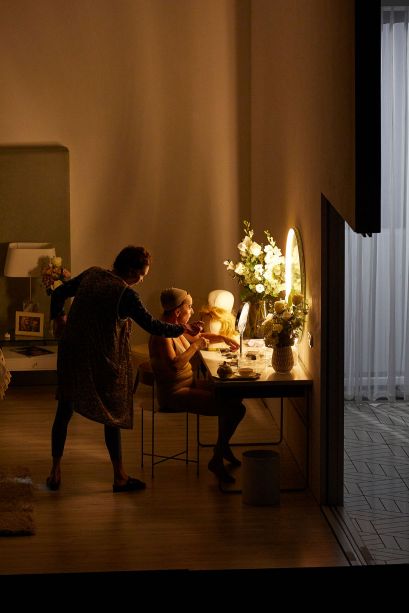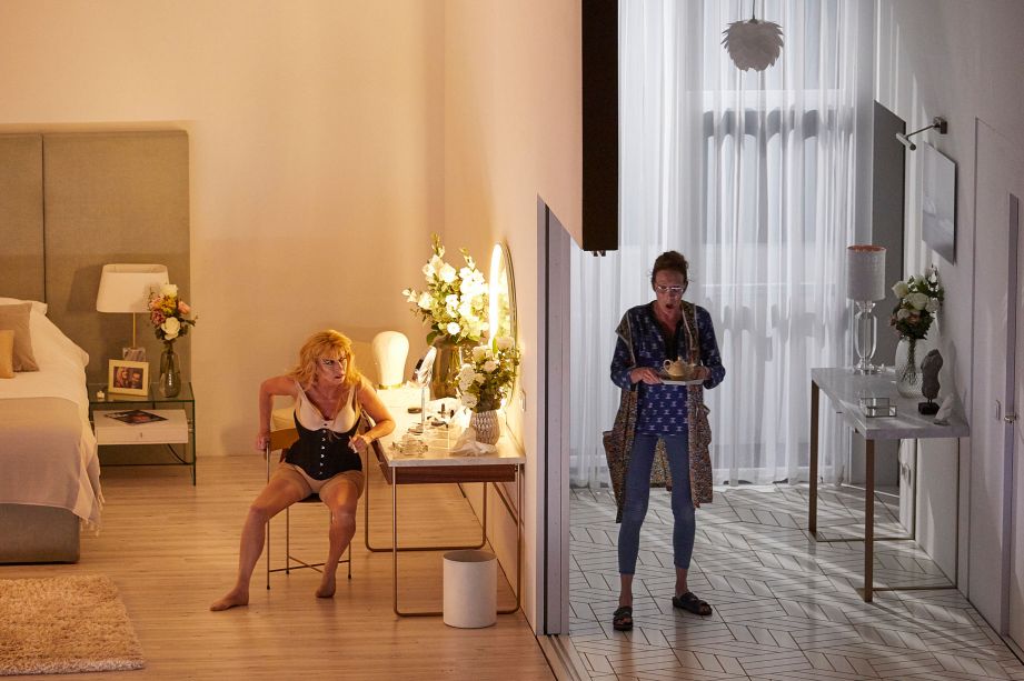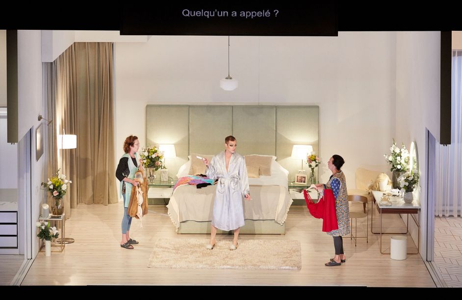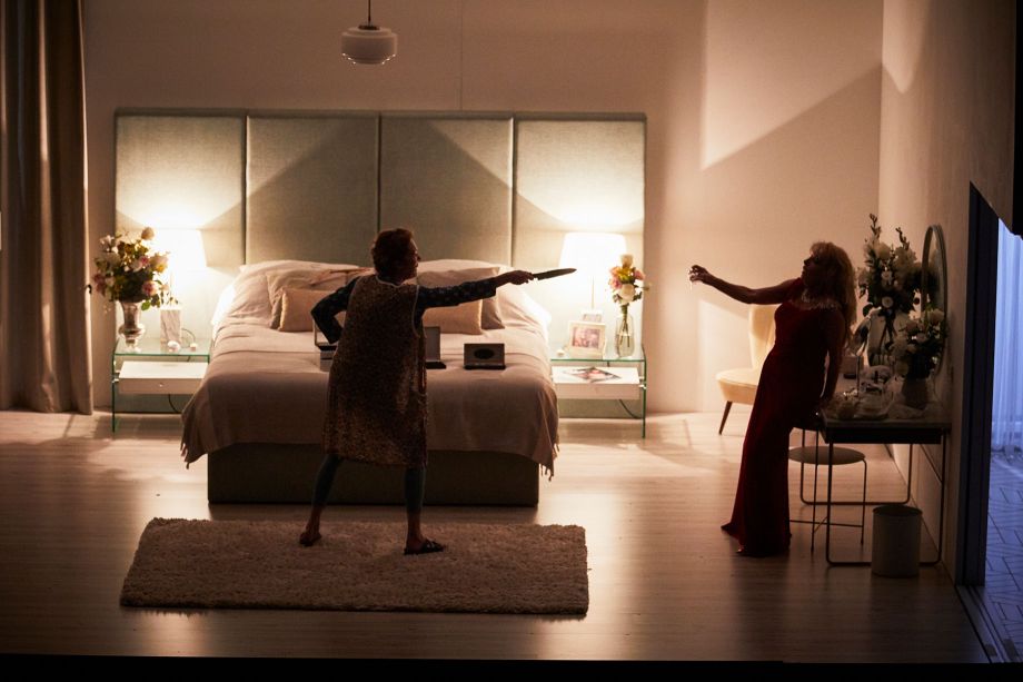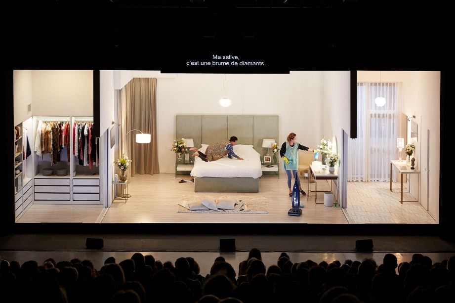 Katie Mitchell donne une ampleur européenne aux réflexions de Jean Genet et déplace la situation des fameuses bonnes de l'après-guerre de l'appartement parisien de Madame au centre d'Amsterdam d'aujourd'hui. Là, elles sont désormais polonaises. En l'absence de leur maîtresse, Solange et Claire y jouent toujours à prendre son rôle, sa voix, ses manières, à se maltraiter et à la maltraiter... Mais si Madame revêt les attributs et les atours de la puissante patronne, l'inversion des rôles est posée – dans la lecture de Katie Mitchell, il s'agit plus de soutenir une réflexion sur l'exploitation patriarcale que de parler de la domination des femmes par les femmes. Le destin fatal des soeurs Papin qui inspira sa pièce à Jean Genet résonne donc cette fois avec la situation de milliers de femmes d'aujourd'hui, émigrées économiques, sous-payées, recluses dans la clandestinité ou sous l'écrasante supériorité de ceux dont elles dépendent. Débarrassées de Monsieur qu'elles ont réussi à faire emprisonner, les deux bonnes manigancent la disparition de Madame, son étonnant conjoint travesti. Leur jeu dangereux, qu'elles agrémentent d'un saisissant suspense, apaise leur rage jusqu'à ce qu'il prenne un tour plus concret. Le passage à l'acte est-il possible?